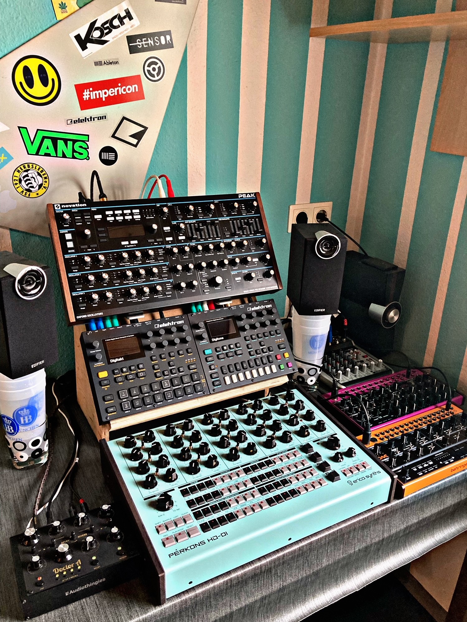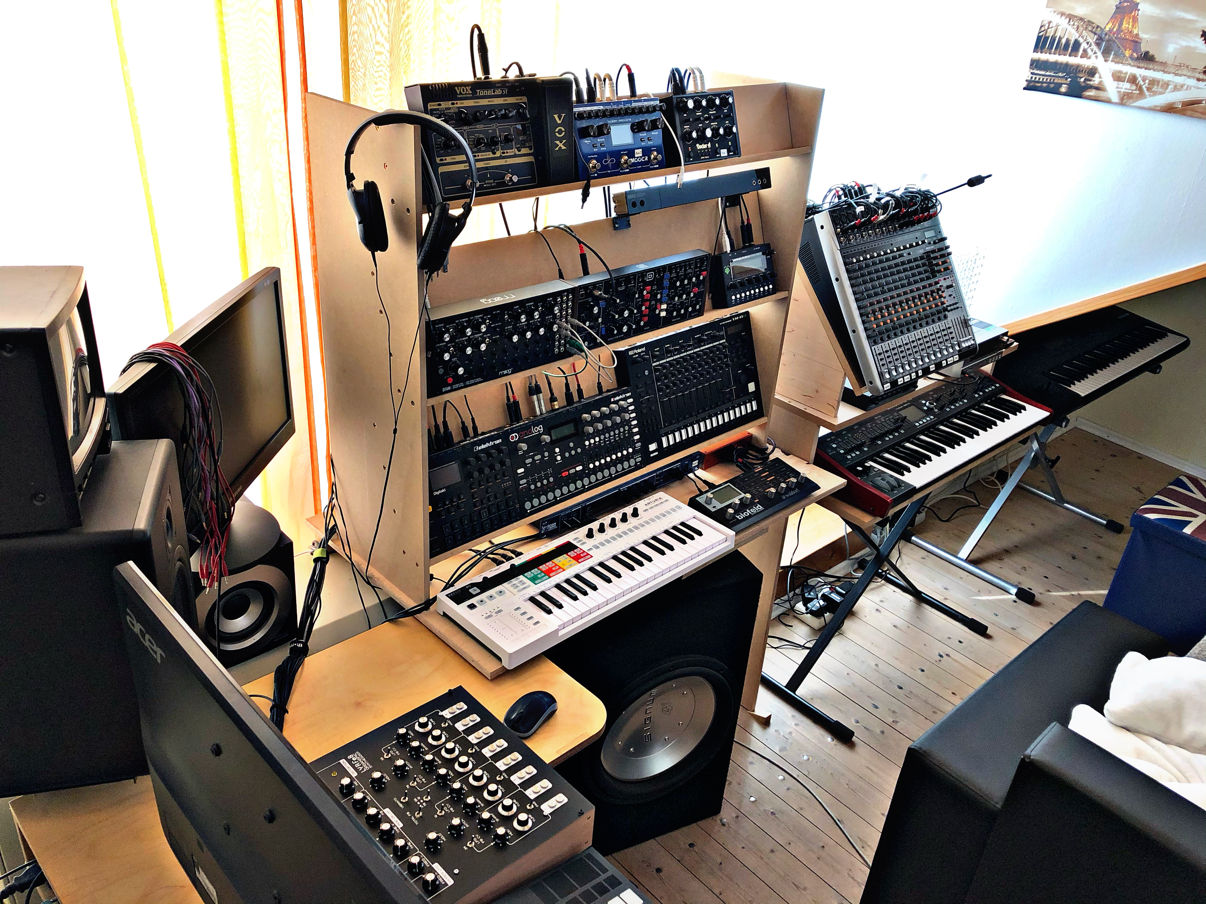 @Braunsen84: That looks fantastic! Would you be interested in making a stand like the one that holds your Perkons and Peak in picture three / TR8S and MC 707 in the last picture with only one tier at the height that you’ve placed mentioned machines that could host OT, ST, DN, DT next to each other? I would be more than willing to pay you for this. Assuming you’re from Germany, shipping within Germany should be possible.