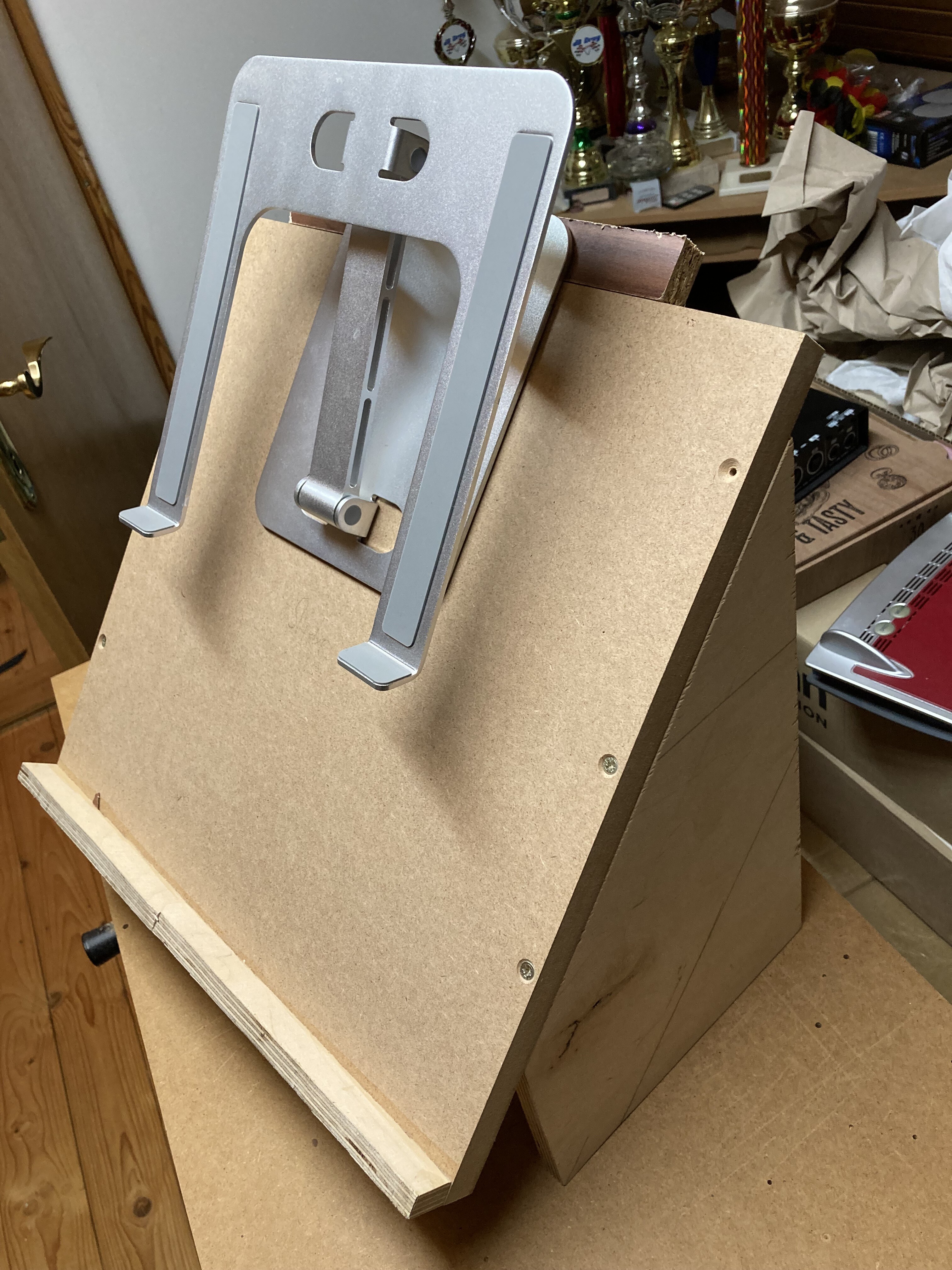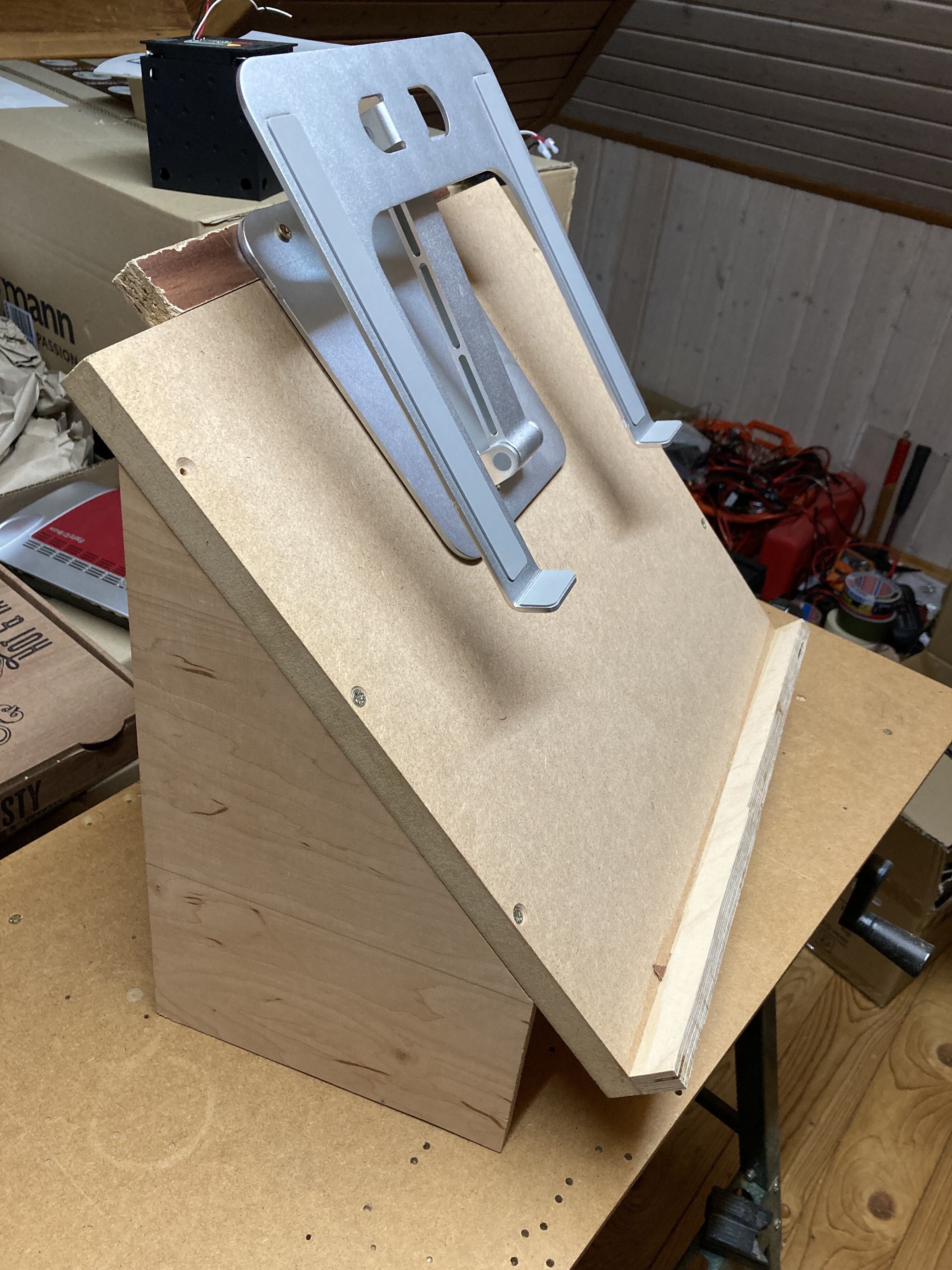 I’m afraid to post those pictures, but this improvised stand is much simpler than it looks X-D I just took a laptop stand from amazon and screwed it on top of an old mixer stand, which I build a few time ago.
