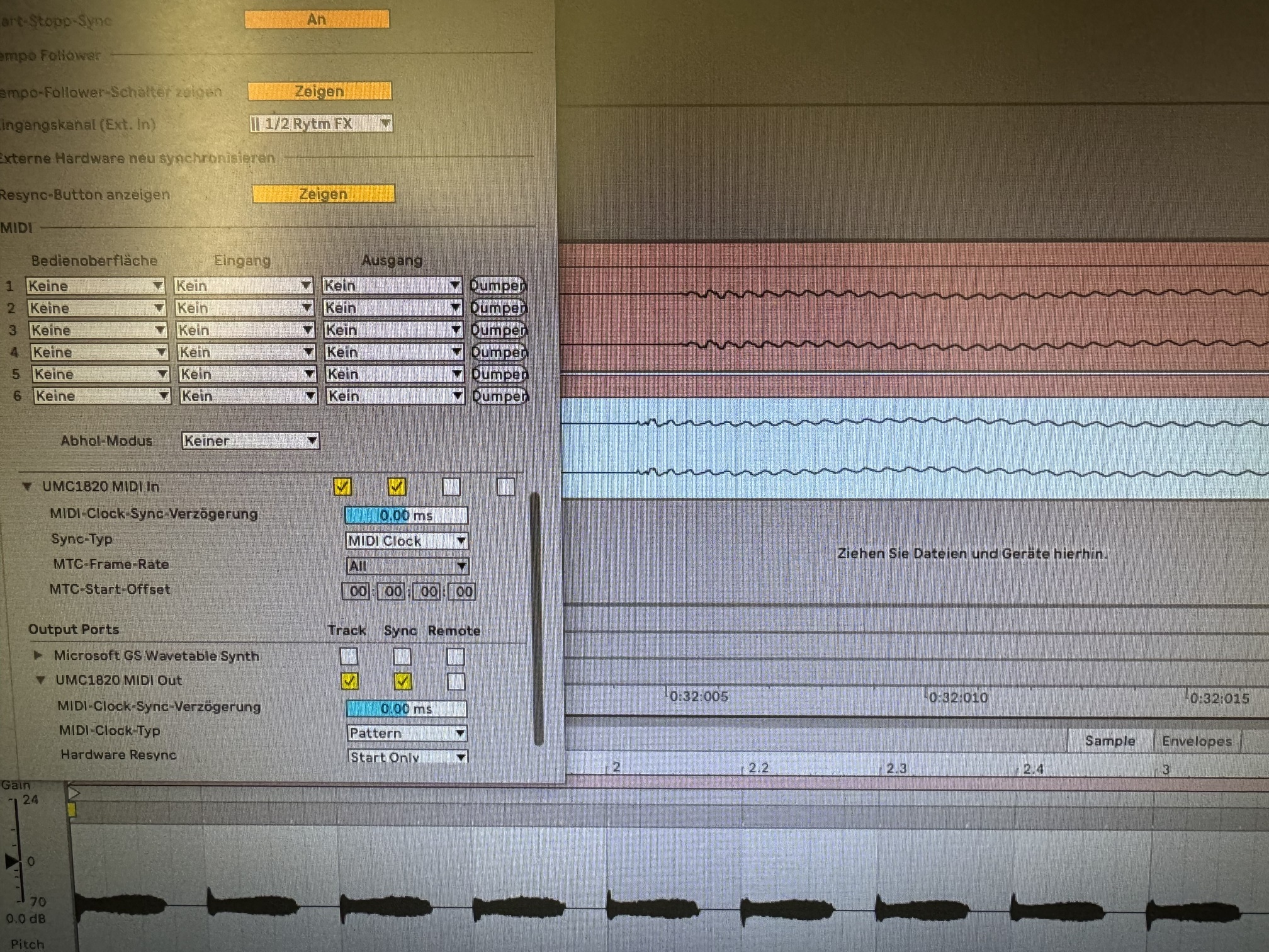 What was strange is not only that the outboard gear hooked by midi was out of sync but even Elektron stuff which I was recording via the Overbridge.