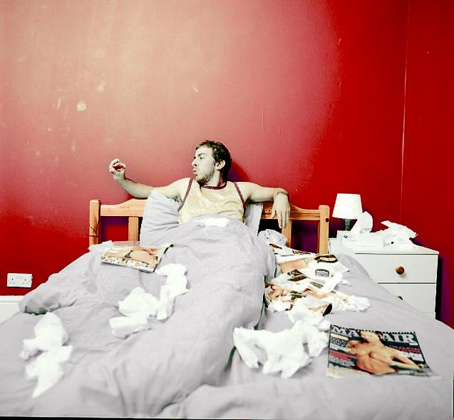 Yeah, it’s not the most PC of photoshoots… I’m not quite sure what/why that was something he wanted. Bit surreal your mate coming round, lighting up your bedroom with expensive photokit, throwing porn and tissues everywhere and asking you to lipstick your hand. Still, free beer!