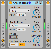 Here is my External Audio Effect in Ableton flanked by two VU meters for proper gain staging.