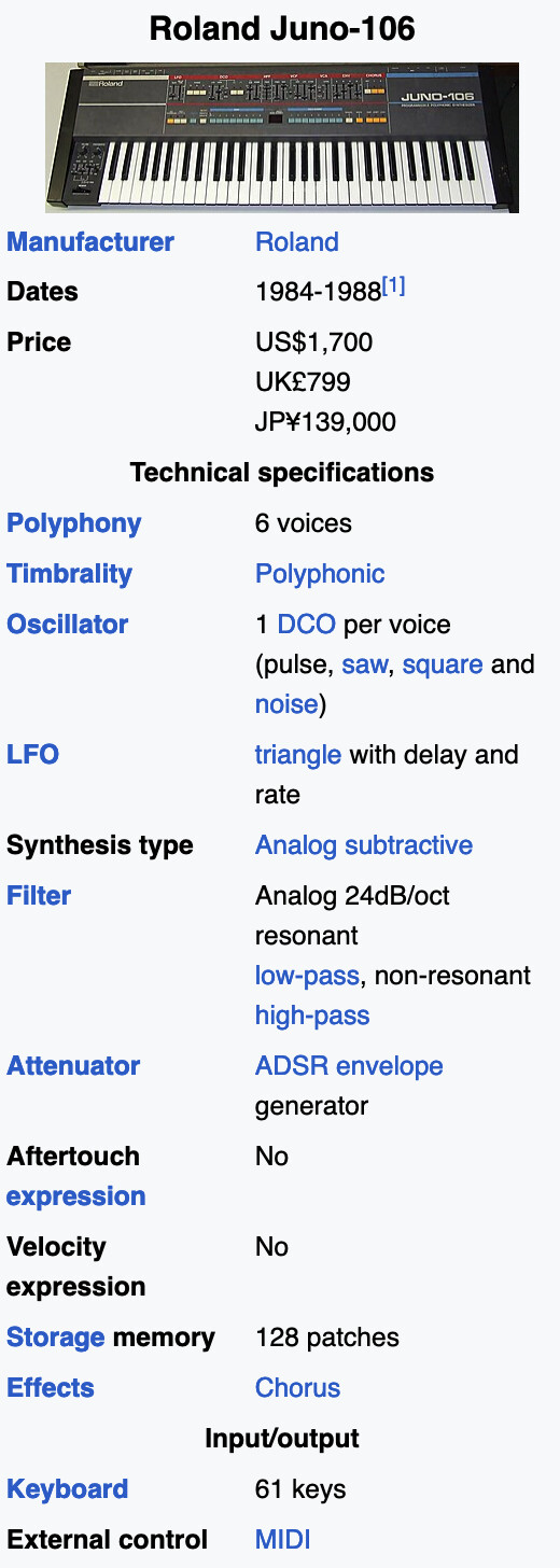 if I take a look at Juno 106 for example - $1700 for 6 voice synth with 2 types of oscillators and two filters, we’re talking $1700 in 1984… if you adjust it to today’s money that’s reeealy expensive.