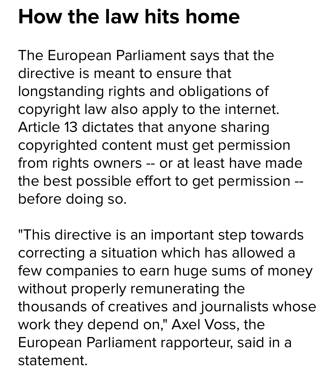 IMO such Article 13 is not about protecting the musicians interests and art in general. It’s about protecting MPAA interests.