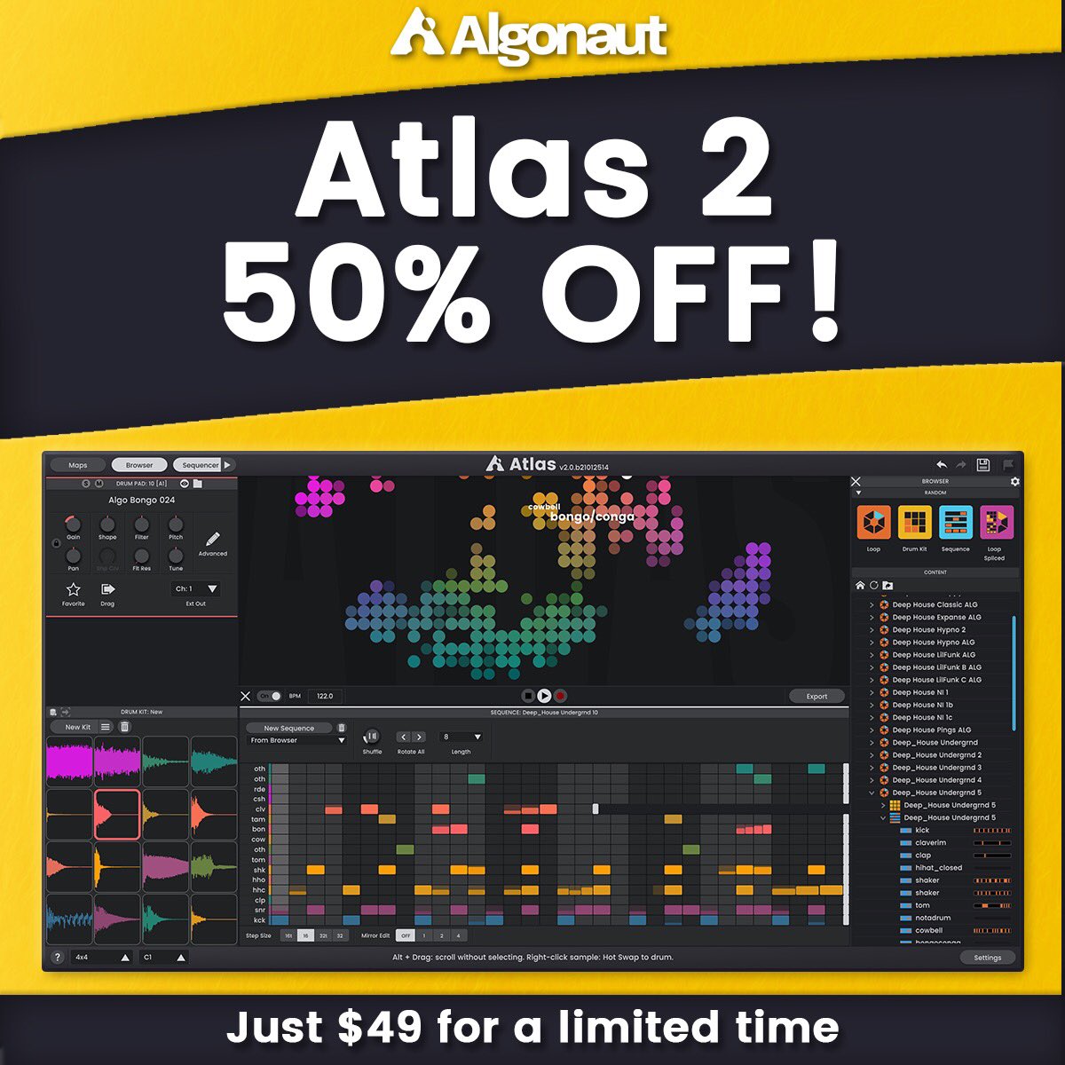Atlas does have it beat on a few other features though… it’s own randomisation (of pitch/velocity/pan, etc) is a bonus… I really like the mixed pad layout and ability to export to pretty much anything else.