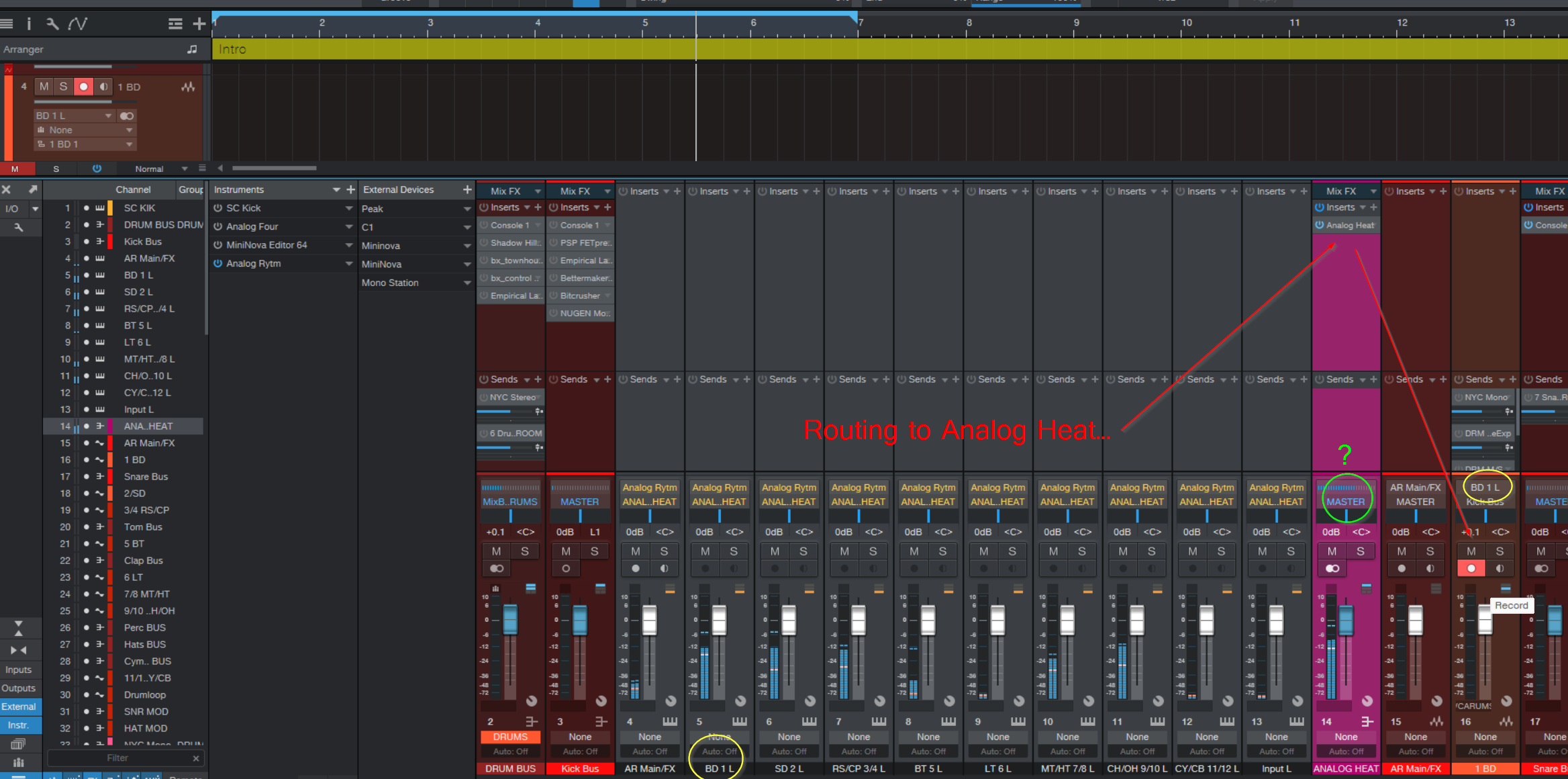 Is it possible to route AR MK2 through a bus with AH, and thus record the processed audio to separate tracks? I hear the AH processed sound. Or do I have to record into separate tracks (aux)?