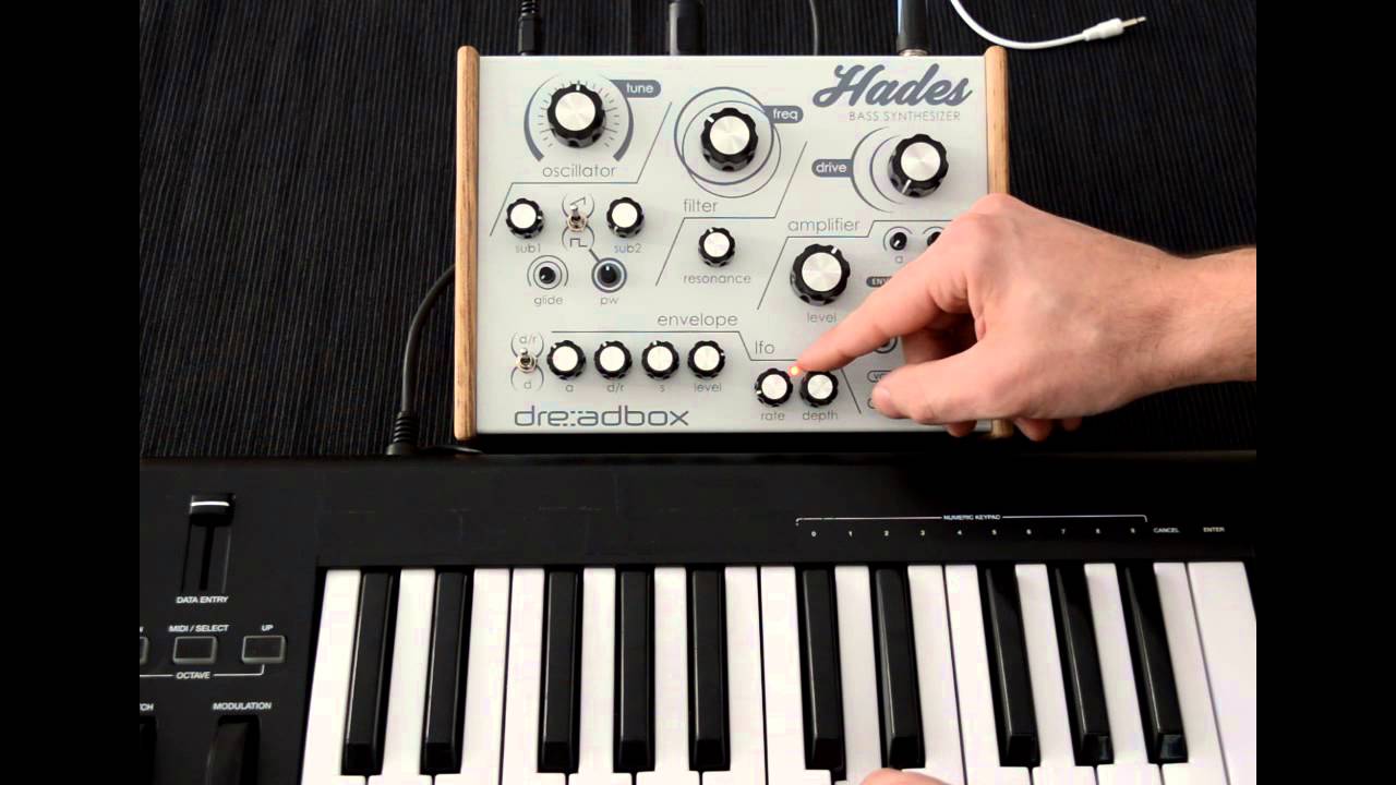 Dreadbox Hades comes out next month, but the Typhon can produce great bass sound, is portable, has effects and patch storage, and is available today.