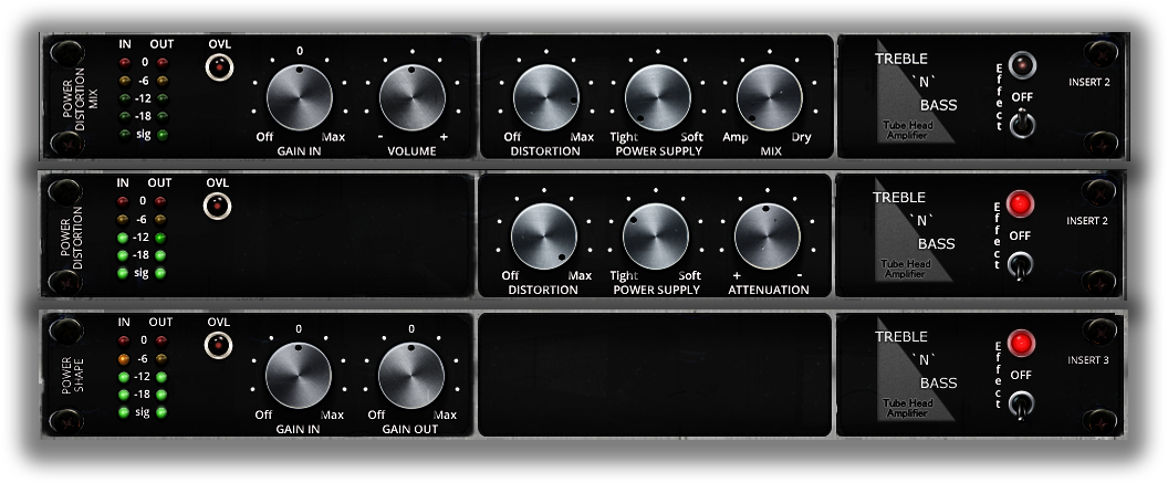 Kush 458a, Waves NLS (3 different consoles’ drive, solid transformer modeling), Wave Arts Tube Saturator 2.