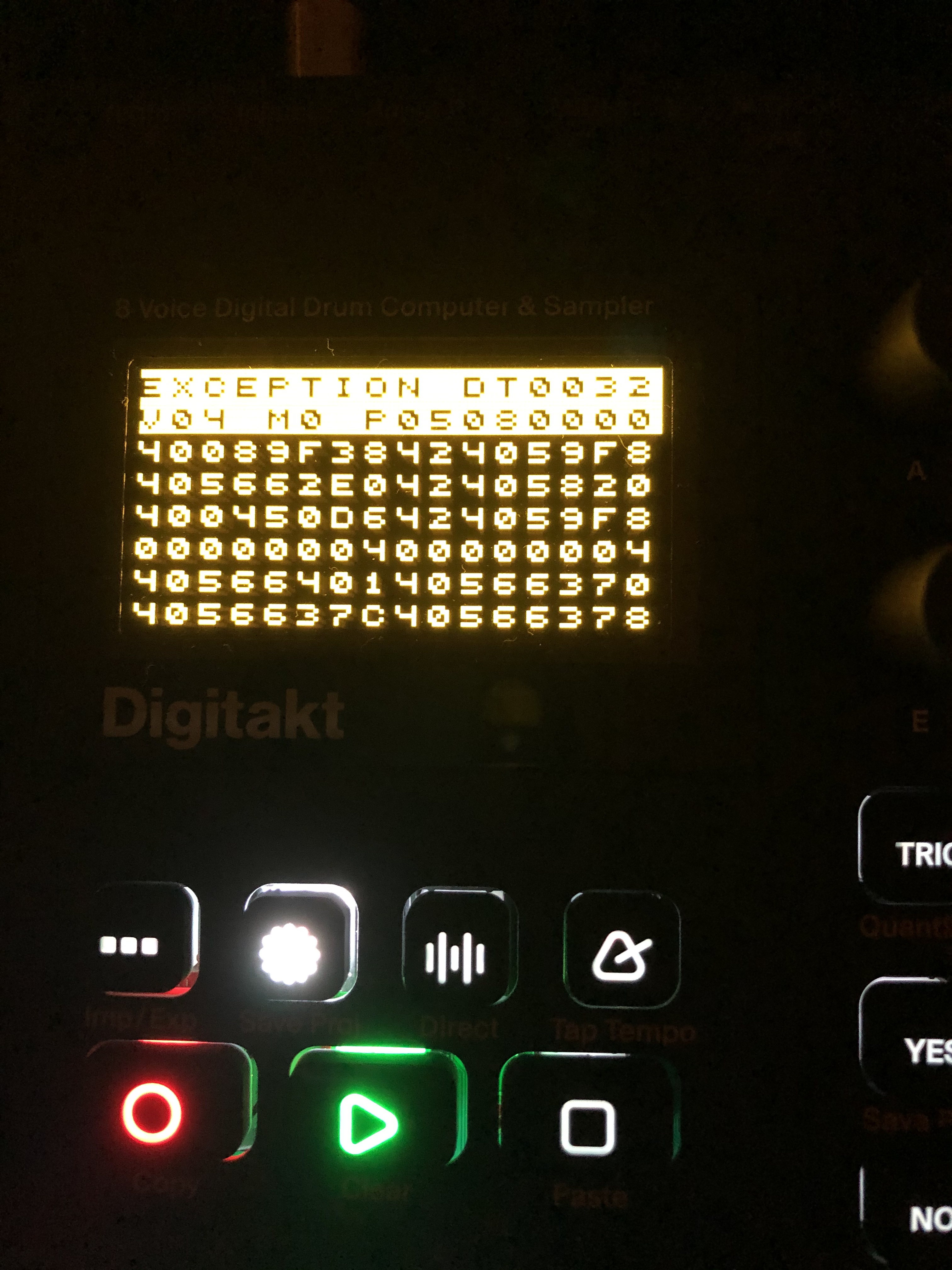¹Note: The Digitakt tries hard to keep everything live in memory, so sometimes after a crash like this you need to not only turn it off, but leave it unplugged for 15 seconds or so.