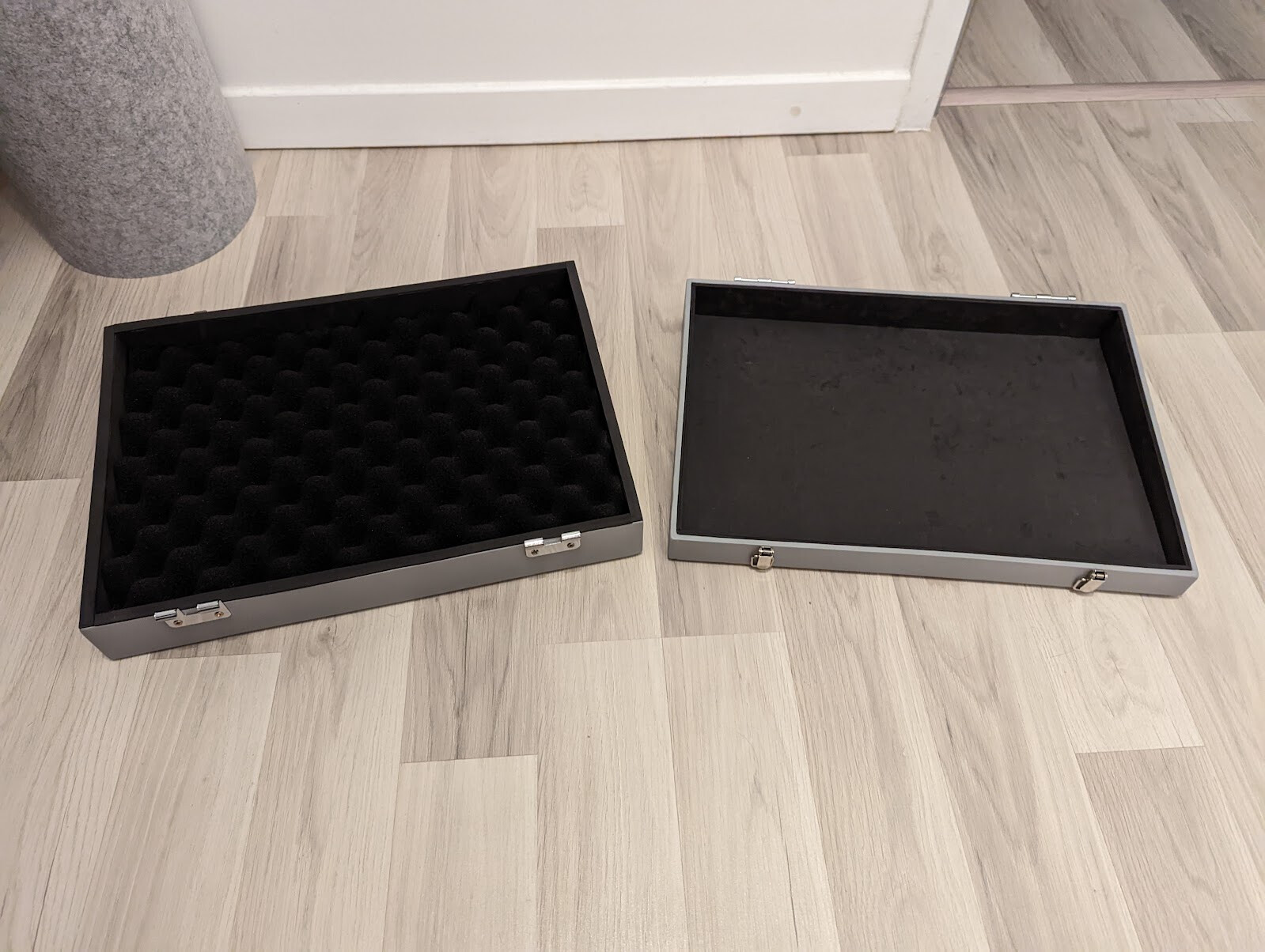 Then, I added the detachable hinges, an “eggbox” shaped foam in the lid and a layer of foam on the lid border.