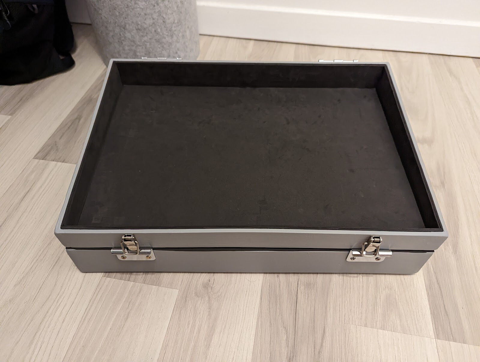 Initially I though of using only a tray to take on 1 or 2 synth at a time, but ended up wanting something more “safe”, so a full suitcase with a lid that I could remove.