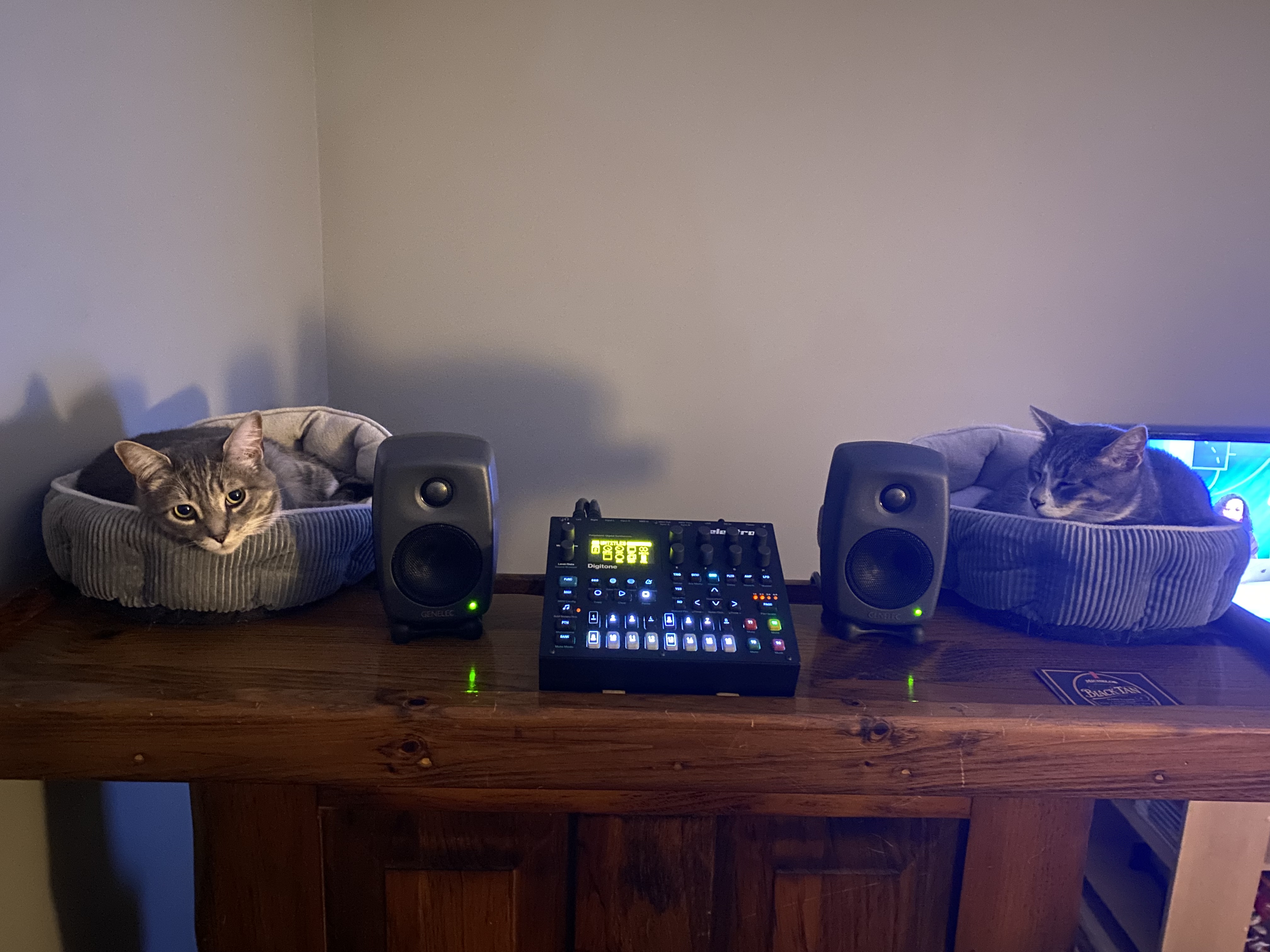 I don’t understand why you want to have the Syntakt volume on max and then adjust the volume on the back of the speakers? I mean I get it from the point of view of let’s make the Syntakt as loud as it will get, and then set the speakers to a good level. But the reality is when you’re jamming you will want to turn volume up and down often.