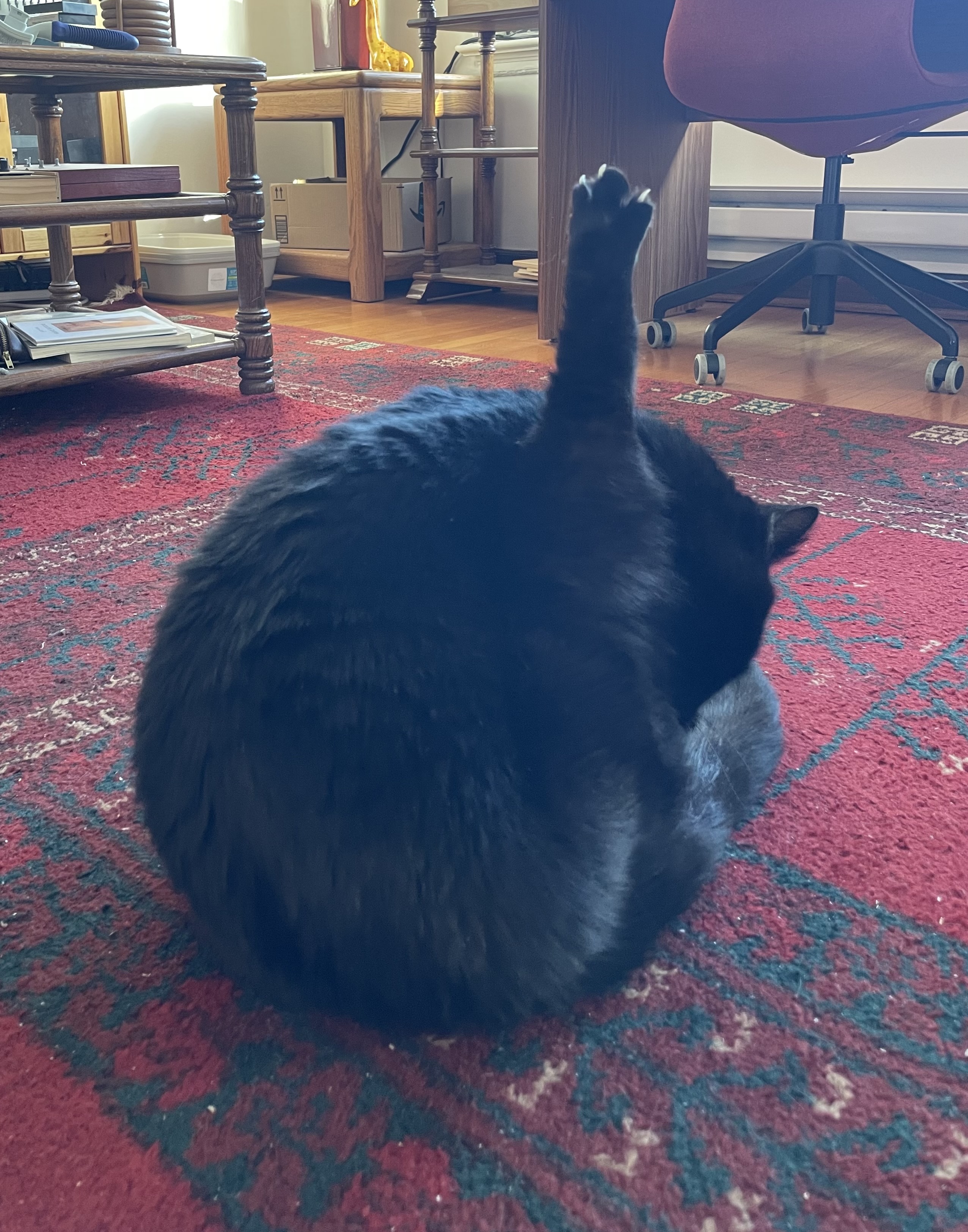 this fella appeared in our yard some time ago so we took him in, very chill although not a fan of taking pics, makes very grumpy face as soon as you try take a pic of him.
