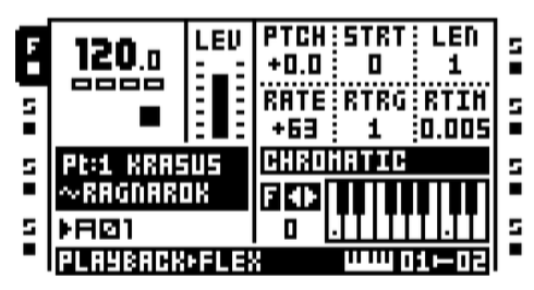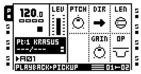 I am not quite sure I understood how your OT’s screen looked prior to the restart, but did it look something like this? Nevermind the keyboard thingy in the lower right (yours might have shown something else), and the labeling of the encoders showing Flex machine parameters instead of Pickup machine parameters – I am especially refering to the size & look of the encoders: