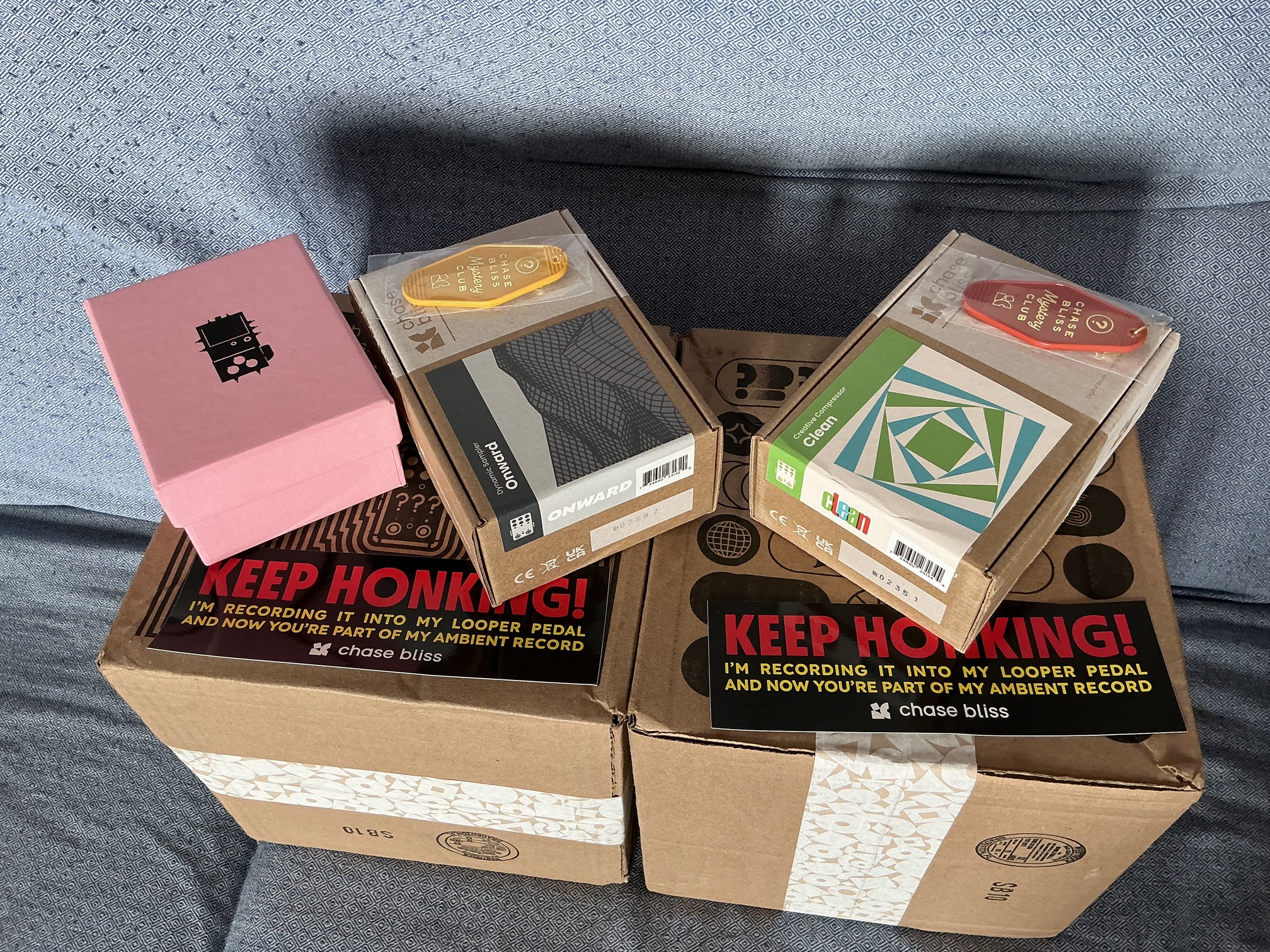 EU order #89XX just arrived! Got a clean and a Onward, plus a misterious pink box.