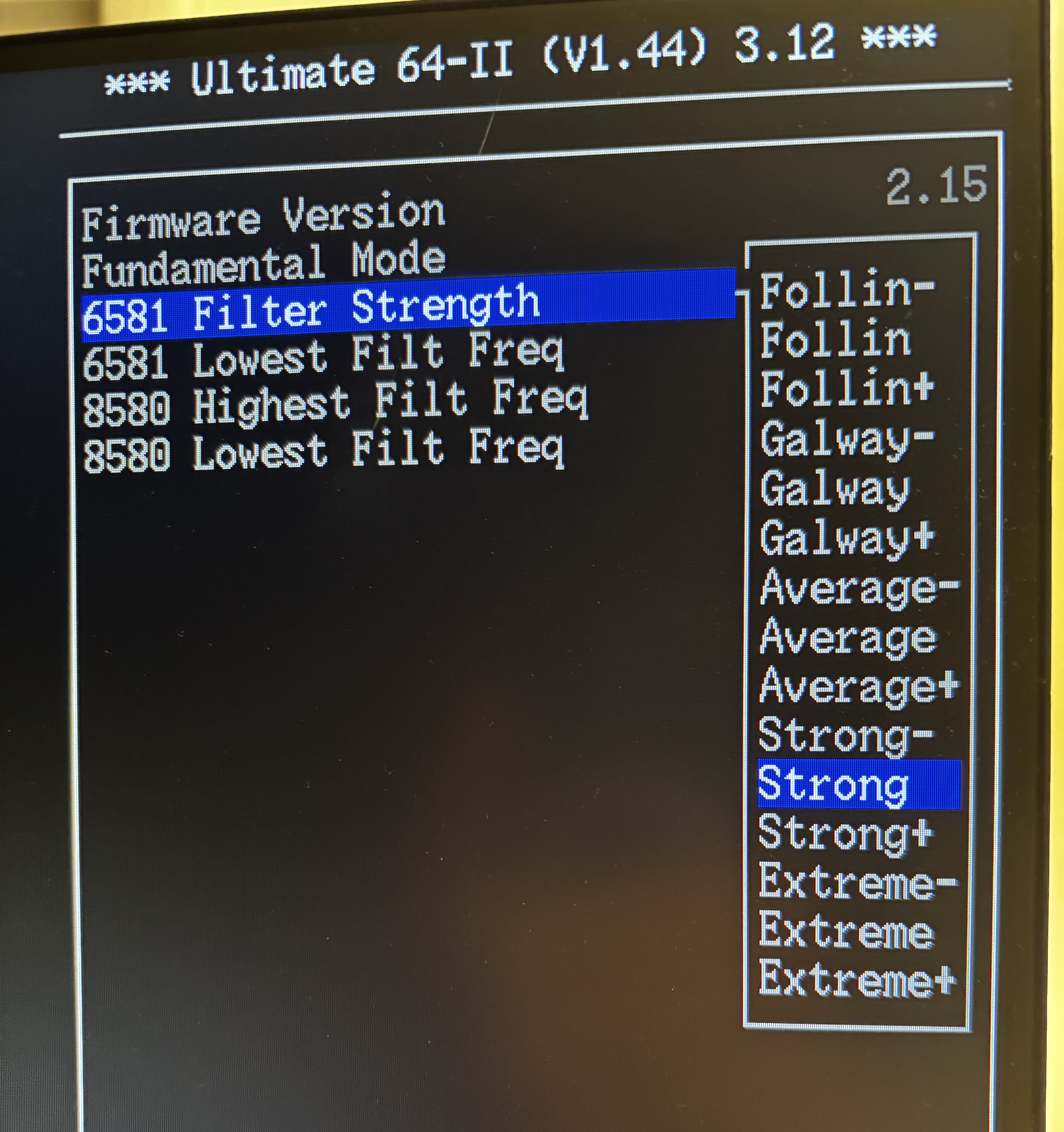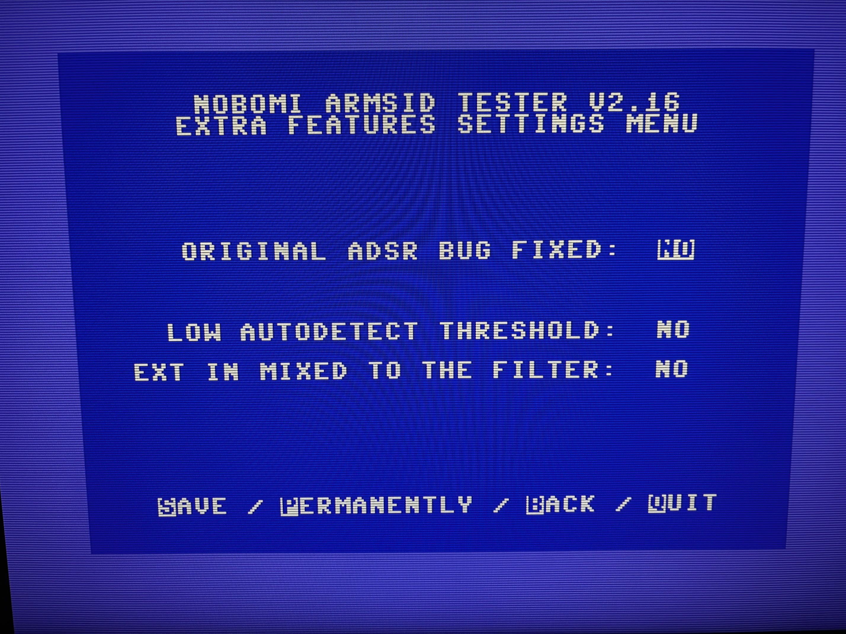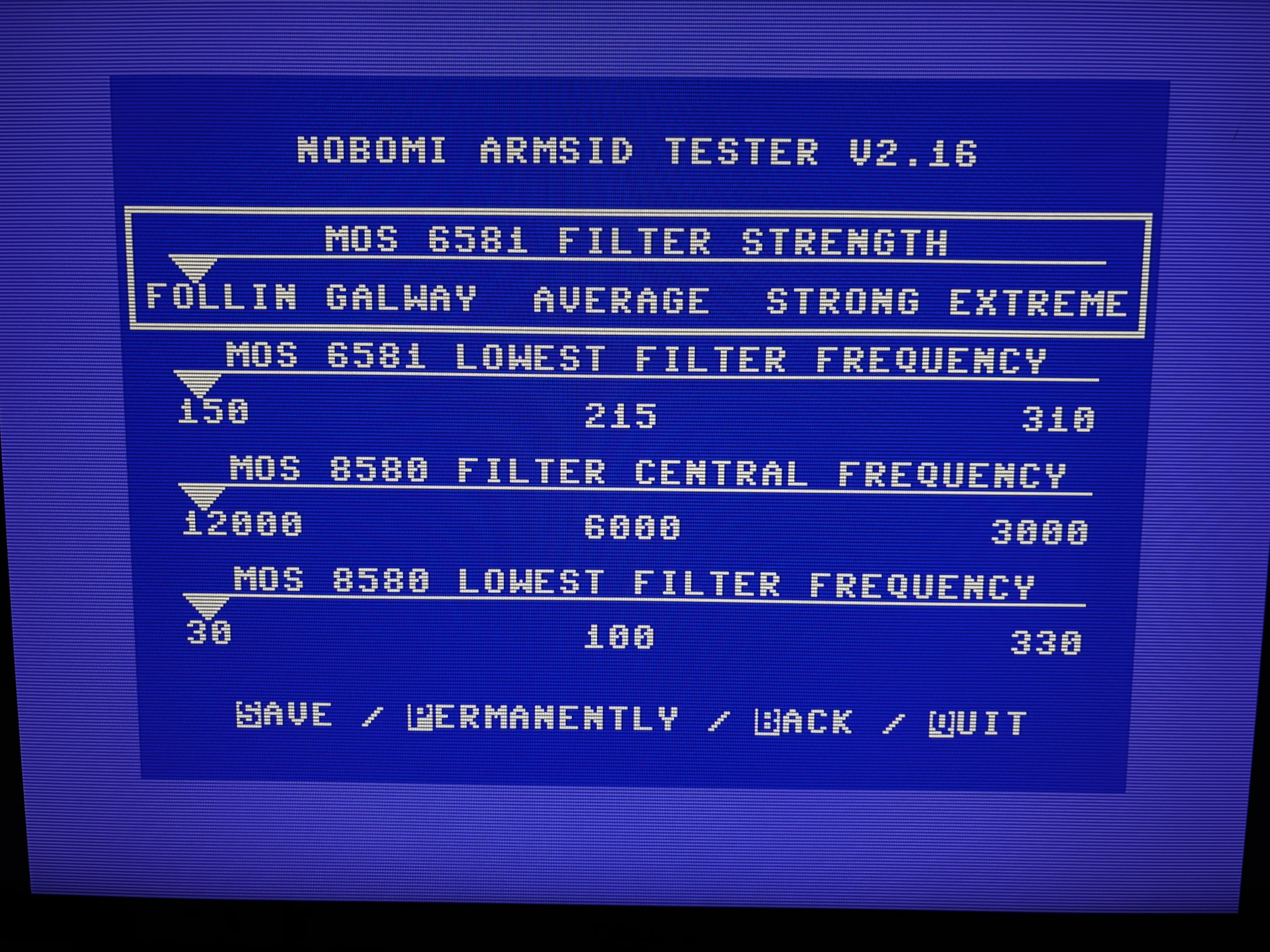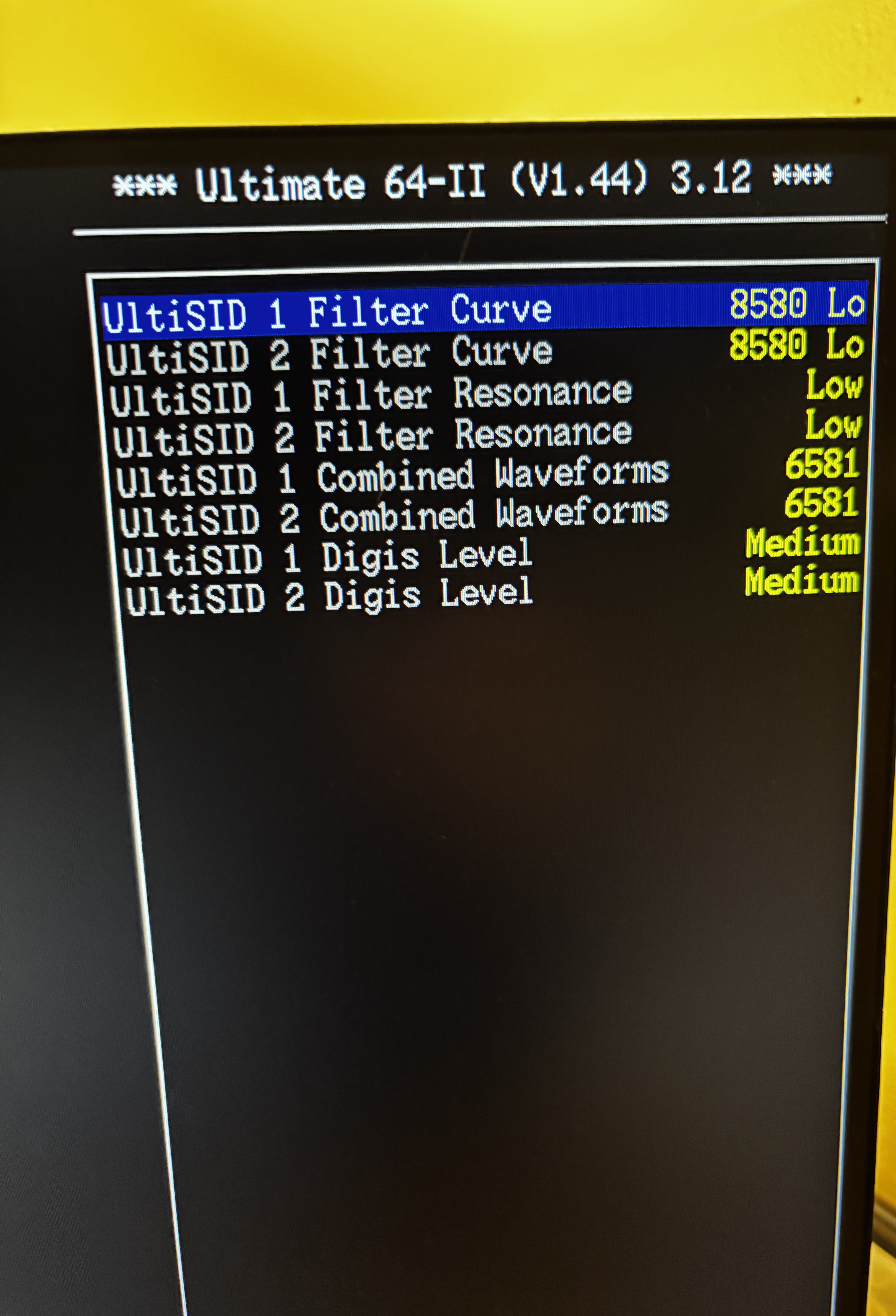 There are really more options than any SID-Nerd would need IMO. I haven’t found a game or demo yet that I couldn’t get sounding the way I remember it on a SID chip, and with very little effort. (usually just swapping between 8580 and 6581) I trimmed out the filter responses the way I like them in the menu, and that’s it!