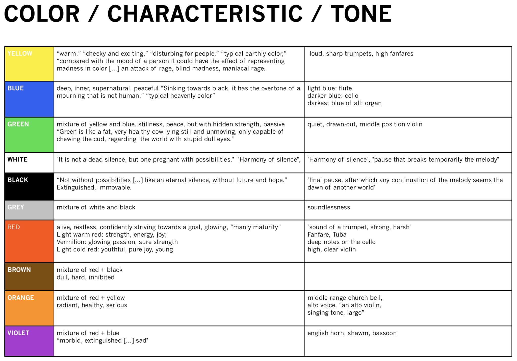 There’s also analogies to be found in the work of Paul Klee, or Vassily Kandinsky, which are known for trying to incorporate music in their work as painters, even though their approach varies it’s still interesting to see how they “translated” music to their canvas, and trying to do the opposite process for music might be fun. Trying to “combine” the arts was very popular among artists at this period (early 1900), and the experiment of Arnold Schoenberg in atonality partly stems from his experience as a painter (it’s an assumption but seeing and hearing his work it seems like a safe assumption to make).
