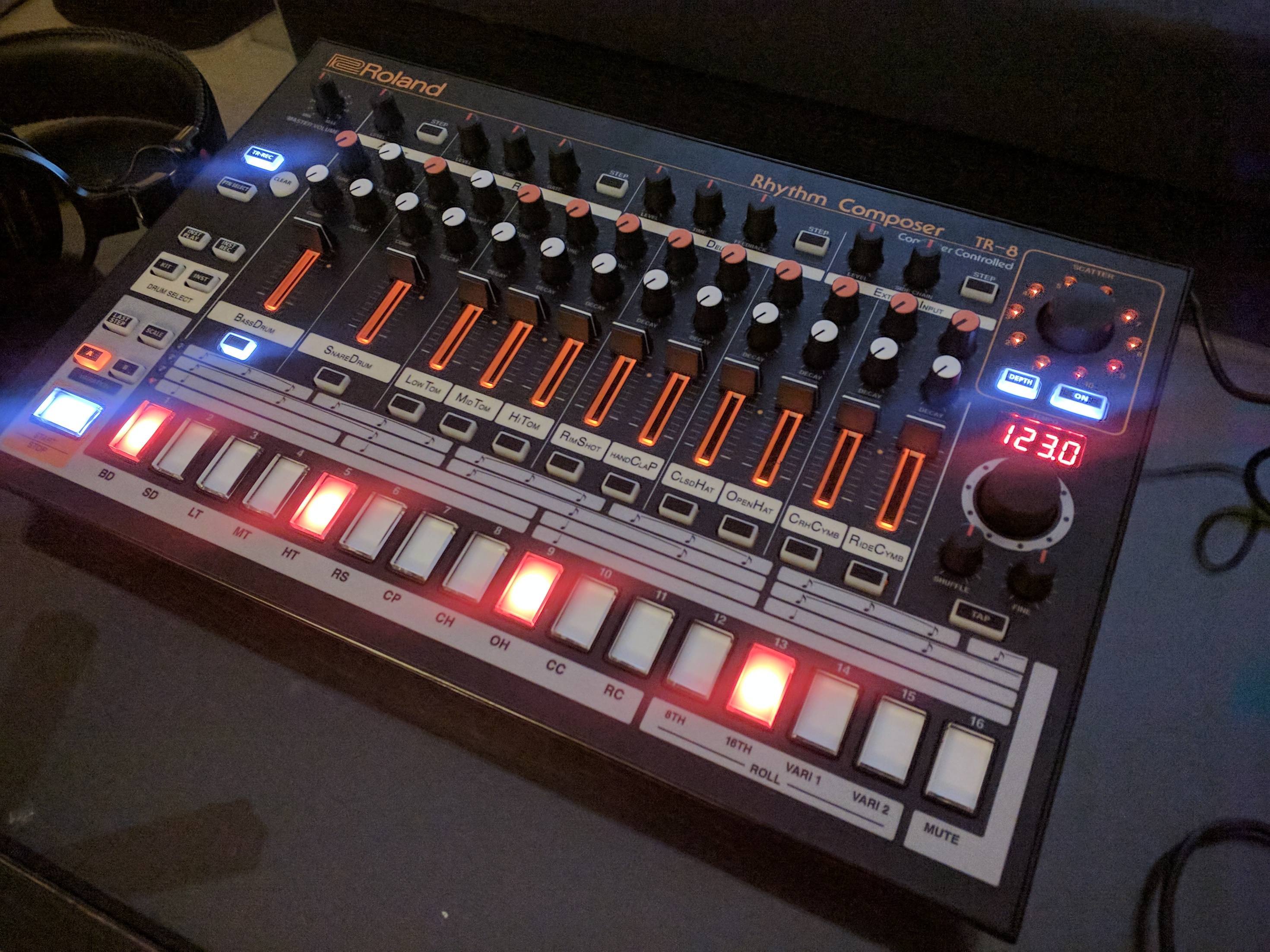 Just got done adding the finishing touches to my TR-8. Currently working on new 3D printed step sequencer buttons which are more akin to the 808.