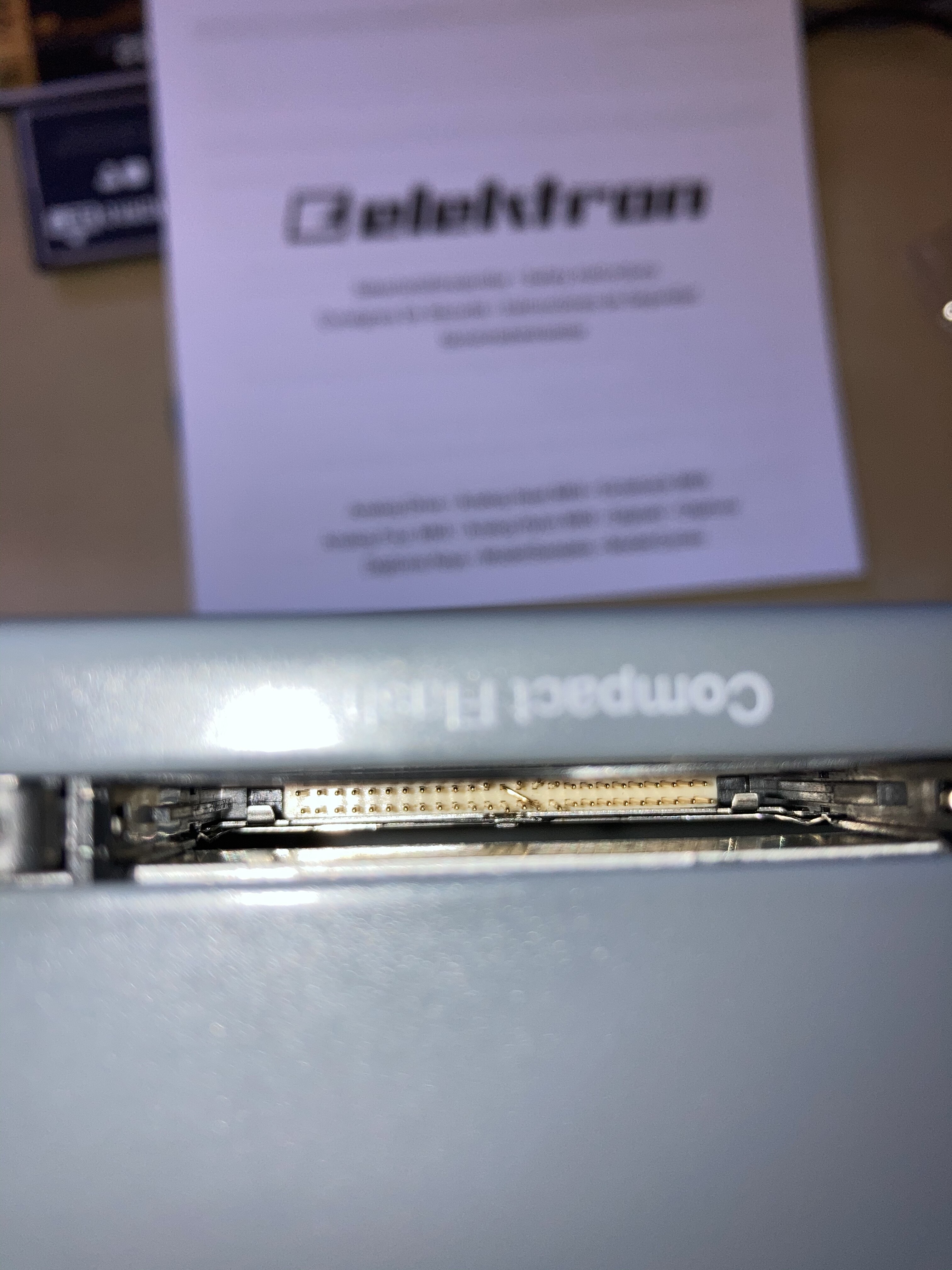 Hi guys, recently bought a 2nd hand Octatrack that arrived today which was like brand new. All was well when I booted up the system, cards were reading fine, I then regrettably decided to removed the CF card from the reader and re inserted, then I found the system was stuck in Demo Mode and card were no longer reading. Ive had a look inside the CF reader and noticed a pin had been bent and out of place. Clearly this had to be my wrong doing as things were working fine until I started to mess around with the cards, but I did not force the card in and was trying to be careful (obviously not careful enough). Ive seen a few posts on this problem that seems to be a common issue but was wondering if anyone had any advice on how to fix this problem or if anyone has any experience with getting it repaired by Elektron or someone else? Im in the UK so Im not sure what to do next.