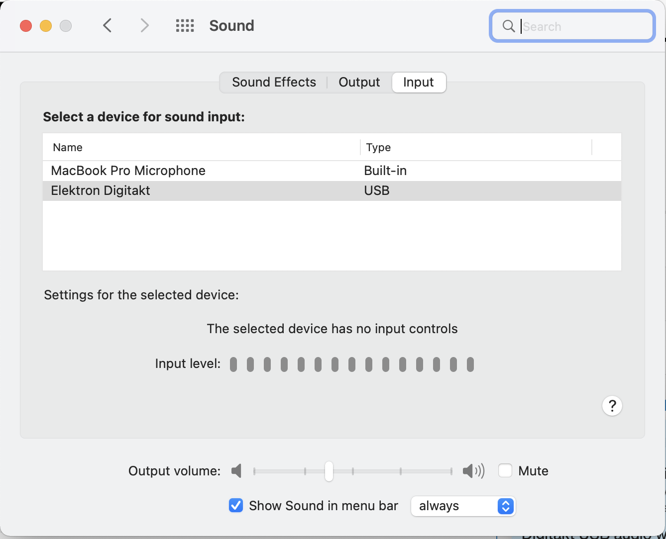 Without running any DAW why can’t MacOS route audio from Digitakt to Macbook speakers out? The input signal is clearly coming in. But when I select Macbook speakers as the output there is no sound coming out. If I use a DAW no problem. But that’s not my use case now.