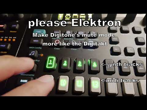 If it was possible to mute both synth tracks and midi tracks at the same time as on the Digitakt, it would be a lot easier to perform on. Also, if you could select tracks by pressing MIDI+TRIG, you could do all the muting and track selection with your left hand, leaving your right hand entirely free to turn knobs and press the fill button.