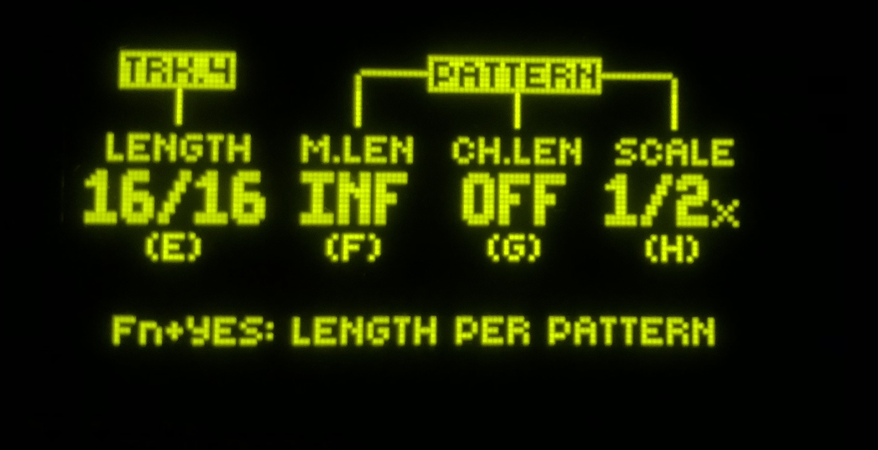 Length per track is ok, I was responding to someone who mentioned scale per track. It seems like only Octa can do that. For example I would love to have 1st track to have 4 bars of bass line and 2nd track to have 1/4 scale to have effectively 16bars where I could record chord progression. Currently it is kinda doable by having entire pattern scale to be 1/4 and then have bass line track length of 16 steps to kinda emulate 4bars at 1x scale. Just a bit limiting for shorter track to loose ability to enter 16th notes.