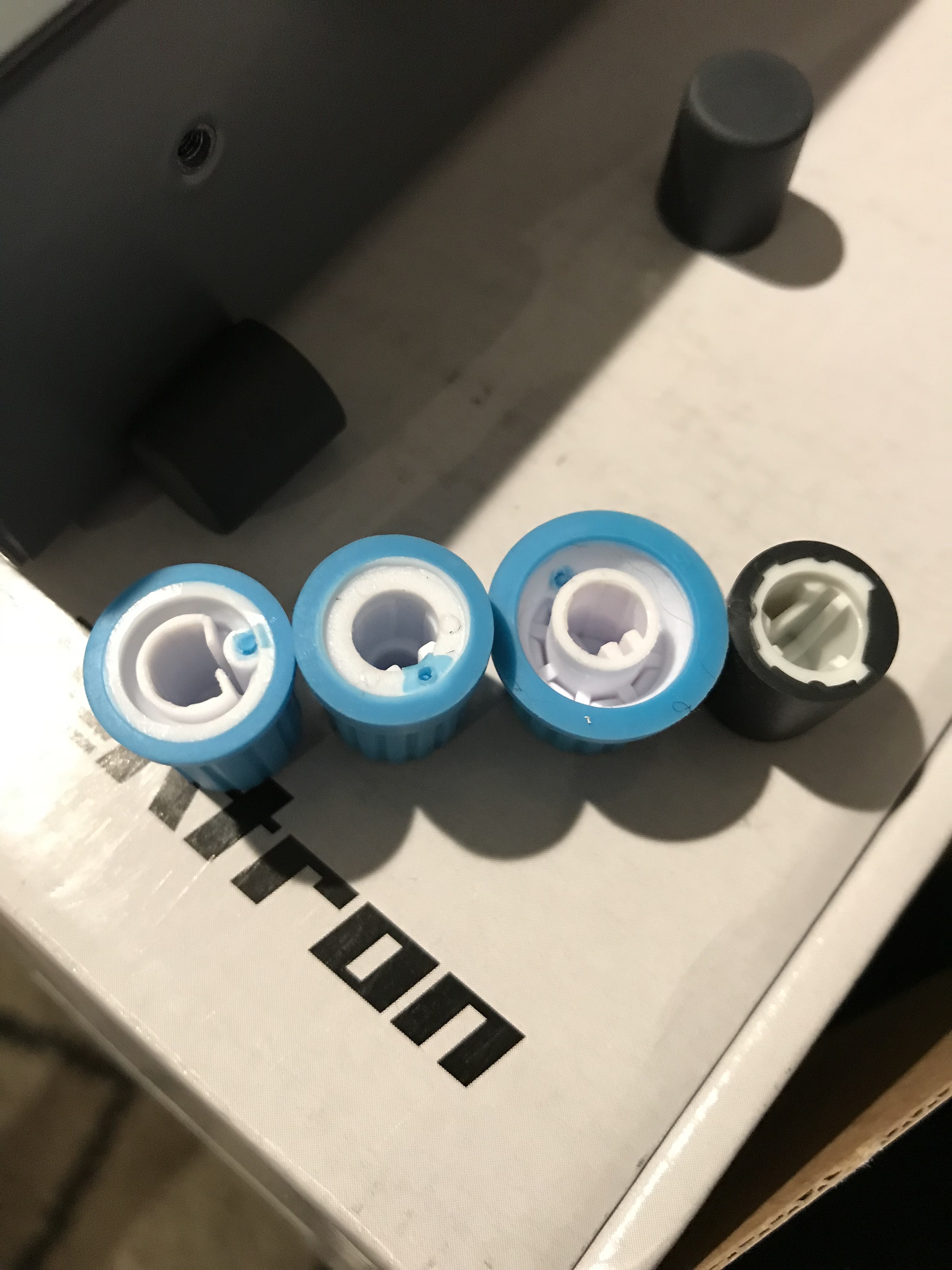 Thank you for the photos @ObscureMachines Looks like the “Superknob” fits best, but the marker doesn’t really make sense on a endless encoder. At least the thin encoder caps fit a bit better than the shorter thick ones. I’ll see, maybe it’s possible to file the inner of the caps a bit to make them fit.