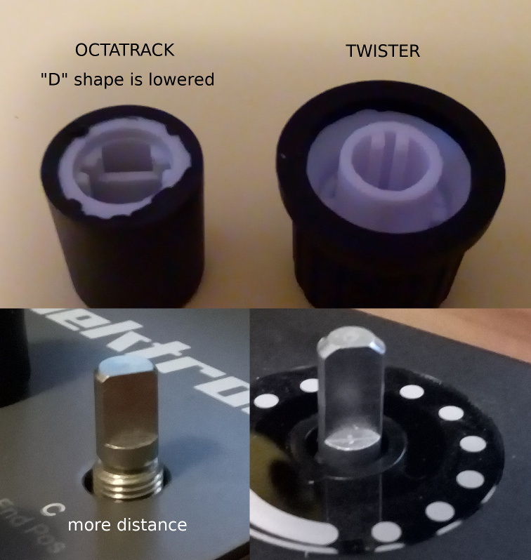 I ordered some “Thin Encoder” and a “Superknob”, looks like they have the decreased “D” shape. I can update the post when the caps are delivered, maybe someone plays with the same thoughts and would like to know if/how they fit and look.