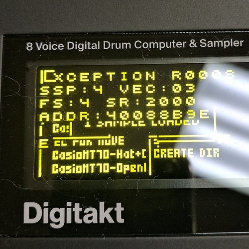 could replicate it now! it happens if you press āFUNCā while the countdown for āBANK xx: Choose Ptnā is still running. Everytime! And since we have to press āFUNCā a lot on this Digitakt its a big thing i assume. Will file a Bug-Report now.