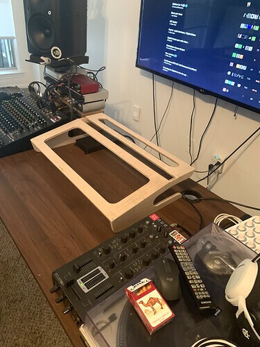 I found that the AK fits well on the ā2nd tierā of 2-tier keyboard stand devices. The recessed area under the keys is a nice place for the ālipā of the stand to rest, and it actually brings the whole AK forward more than another device would be. This is useful because I donāt want to be too far from its screen.