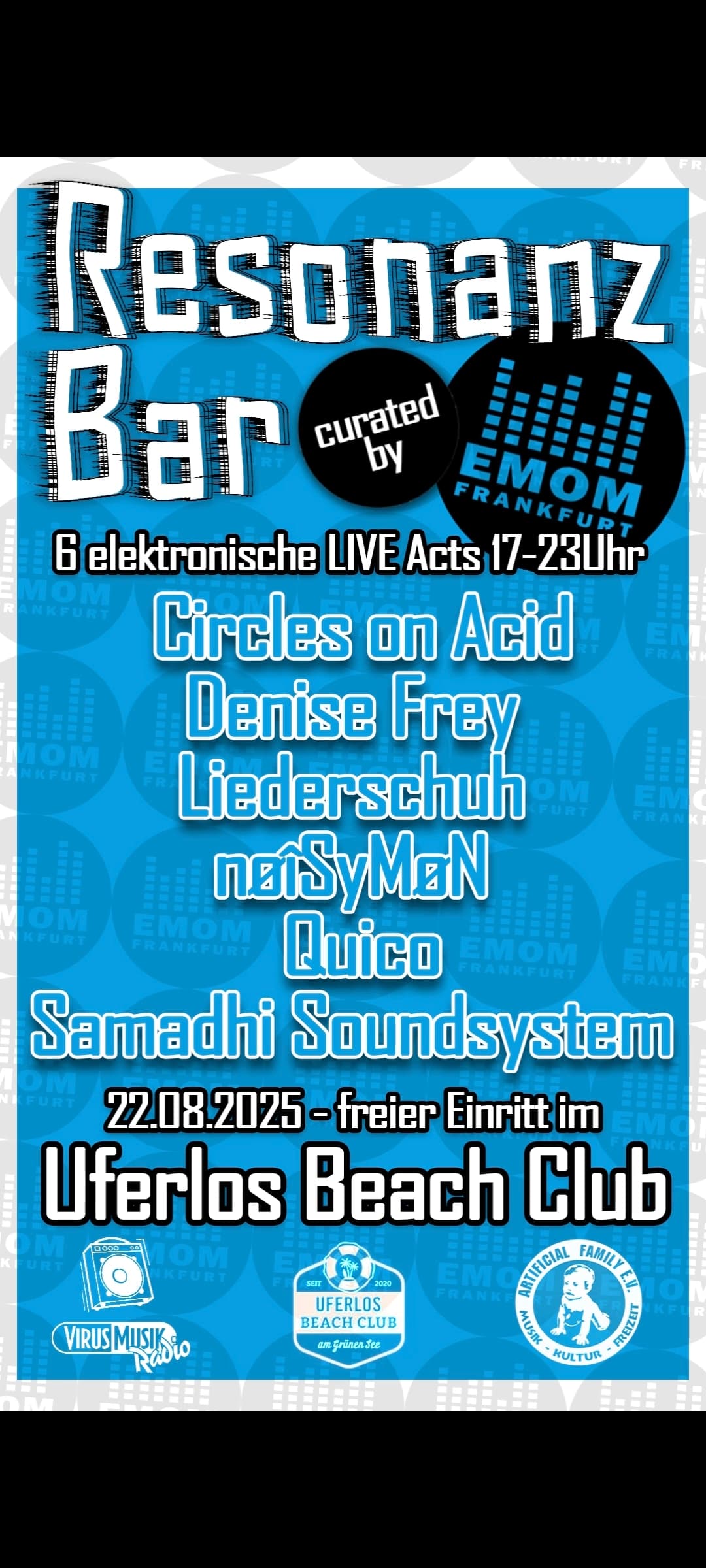 Next Up: ResonanzBar, this time not an open stage, but a curated line-up because we have been invited by ArtificialFamily to bring some acts to Uferlos Beachclub.