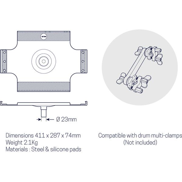 There is a mounting plate for drum stands.