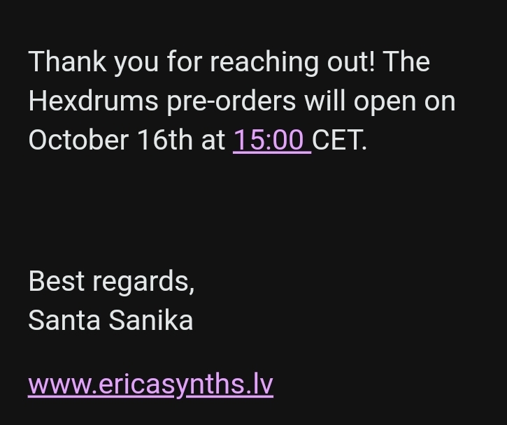Ha. I wish I worked for a synth or drum machine company! No I just saw that they were announcing on Oct 16 and so I googled “hexdrums manual” yesterday and nothing came up. But then I looked it up again this morning and it did.