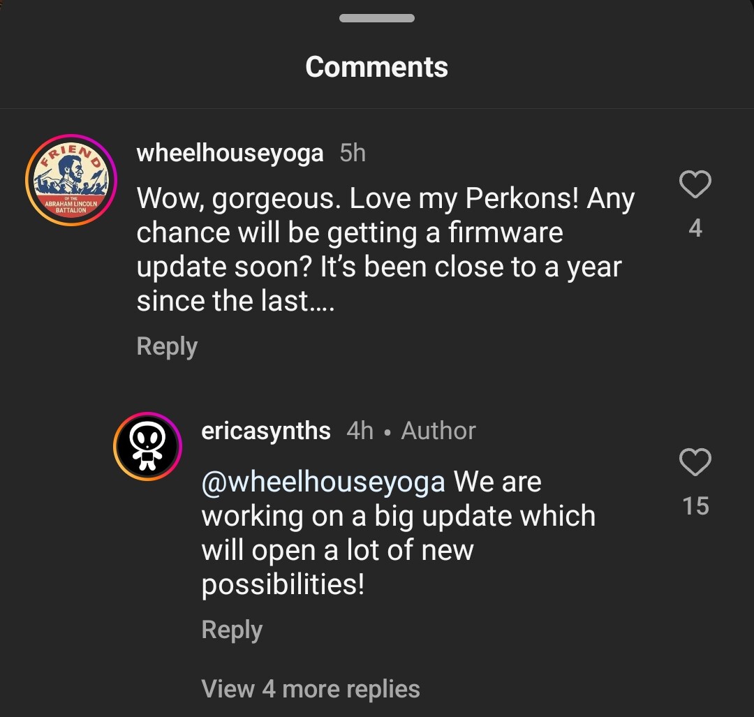 Erica are working on a “big update” for Perkons that will “open a lot of new possibilities”