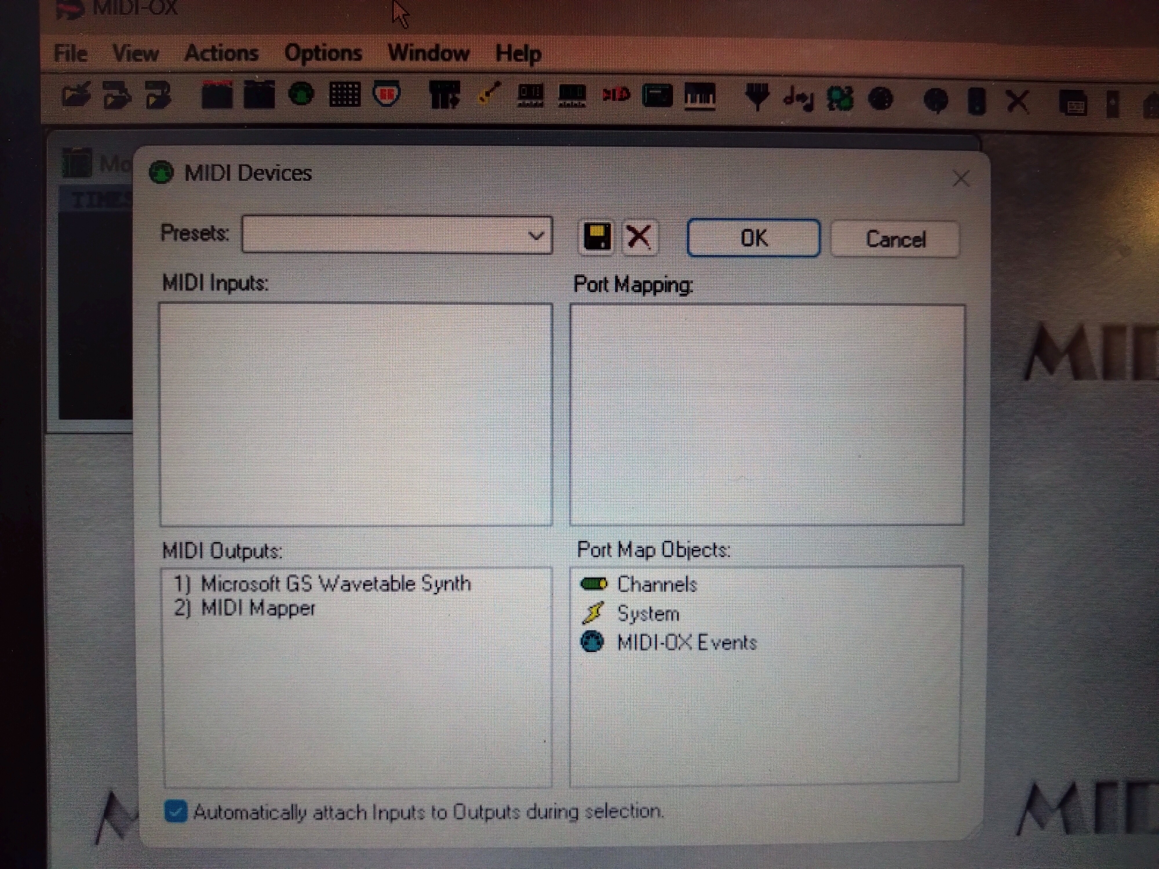 Then just click on your device in the MIDI inputs area so that it’s highlighted, then click ok on that window. Then you should hopefully see some scrolling data in the black space in the MIDI-OX main window.