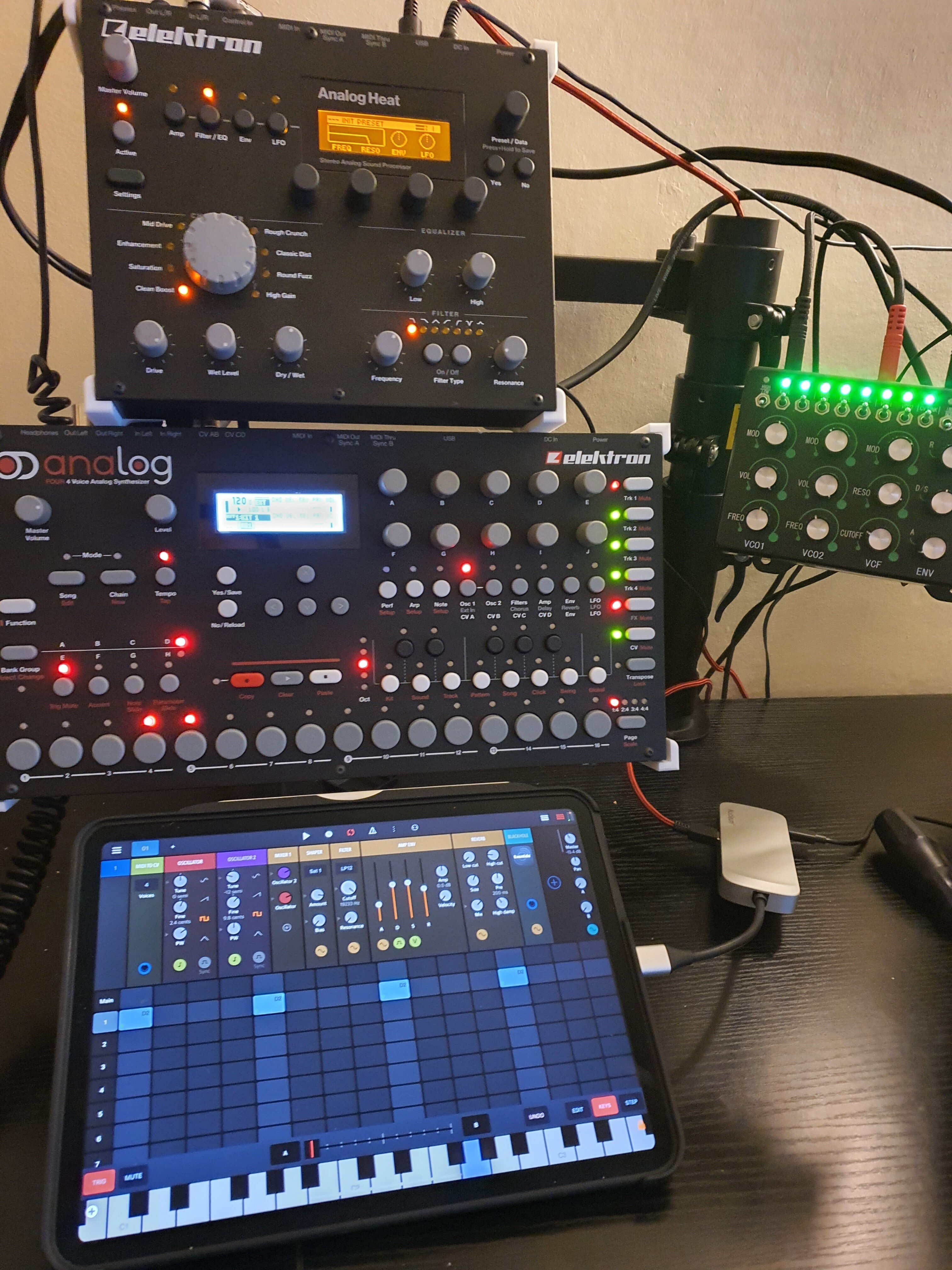 I have an analog heat plugged into an ipad pro via usb C hub. Then I have an analog 4 going into that via normal cables and into that I have a Reon Driftbox R Limited (CV version) which has been synced up and works on the sequencer just fine. It produces sound (so not a soundless patch) when plugged into my PC soundcard but when I connect the audio cables into the external inputs on the analog 4 i get nothing. The 4 synth parts create sound just fine.