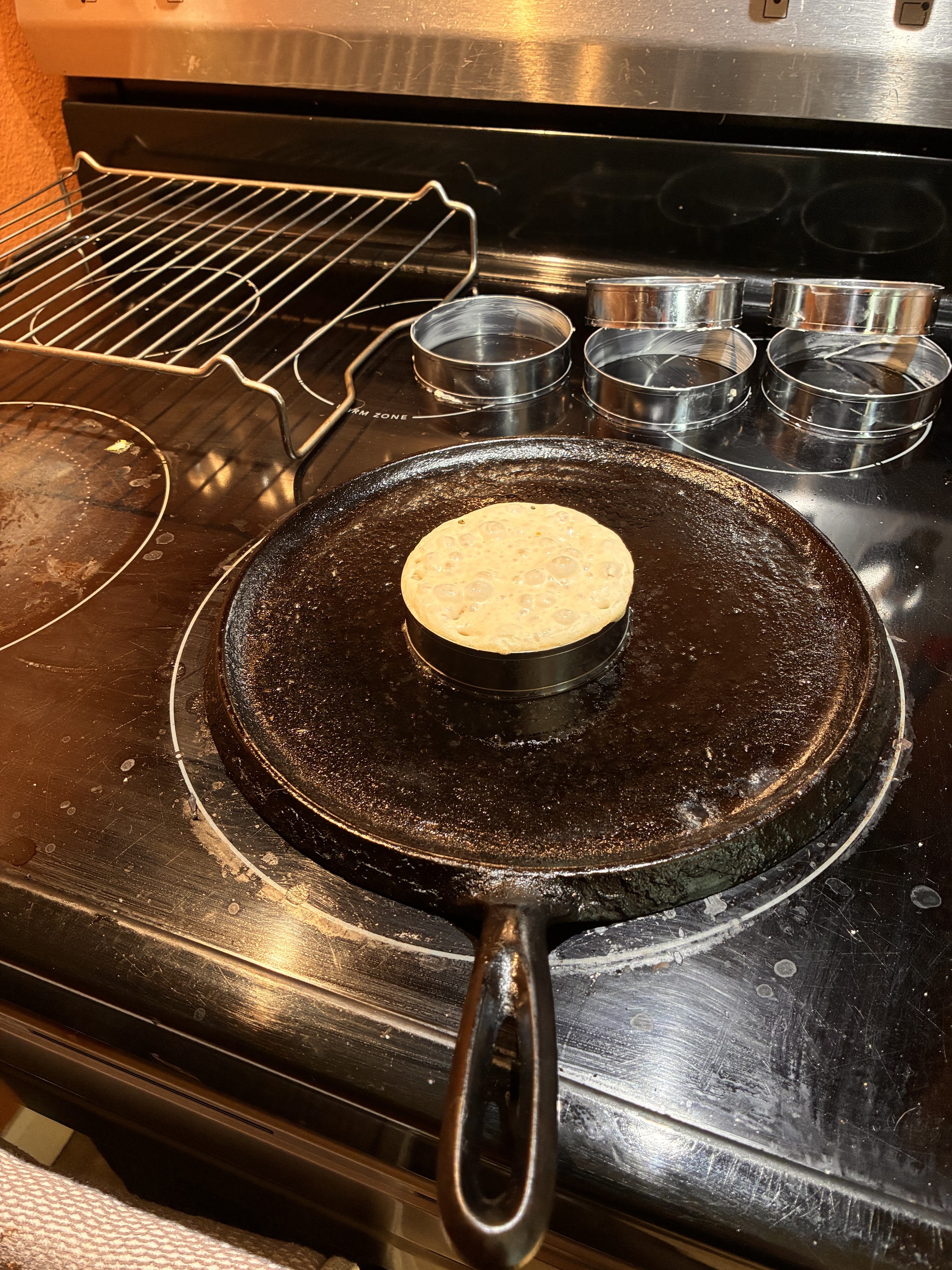 They are certainly spending a fair amount of time on the griddle…holes are staying open when the bubbles burst…I even tried finishing them in a 180 F oven…
