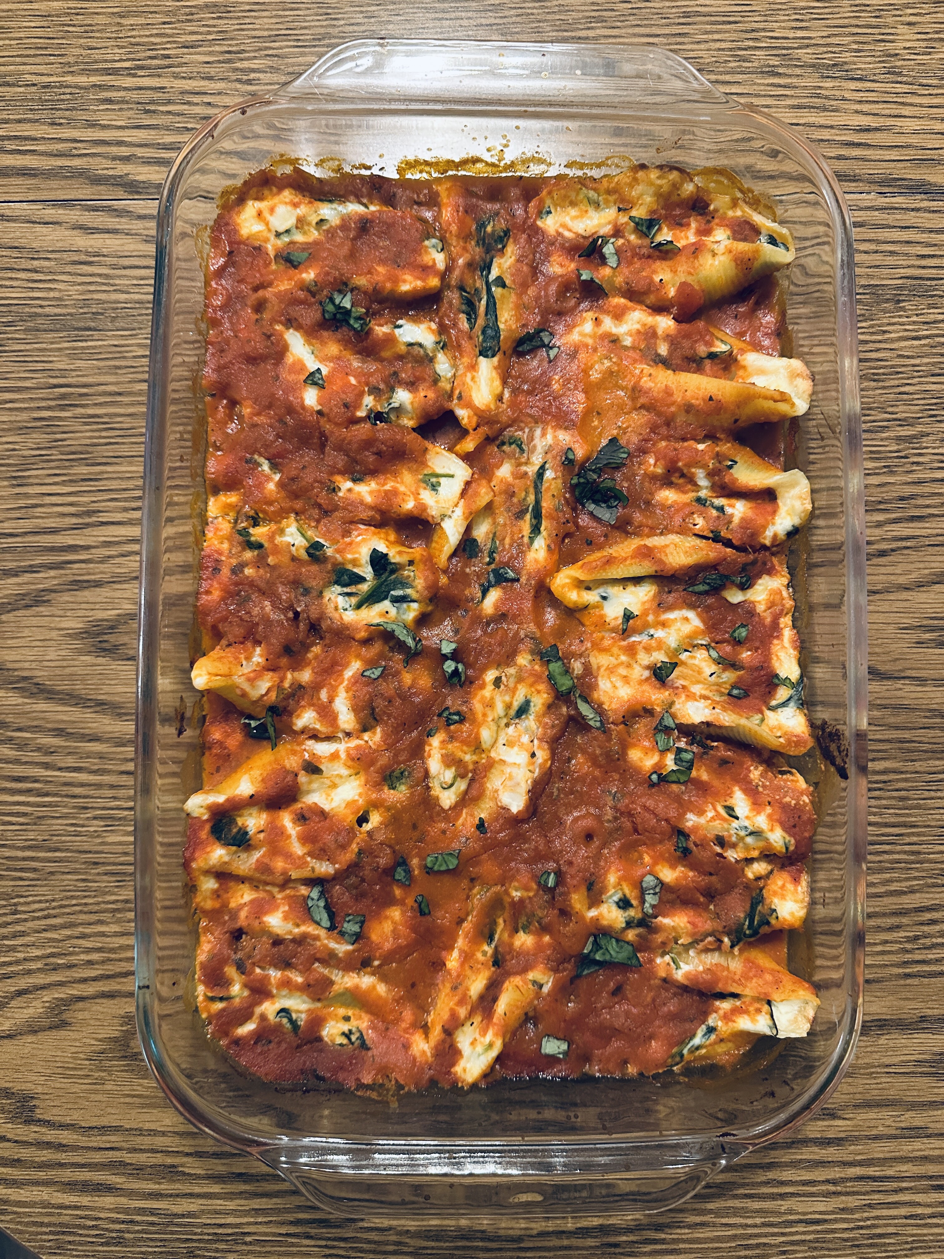 After saying I eat healthy I got over ruled for baked cod and green beans last night and made stuffed shells with spinach instead. At least there fresh spinach and basil!