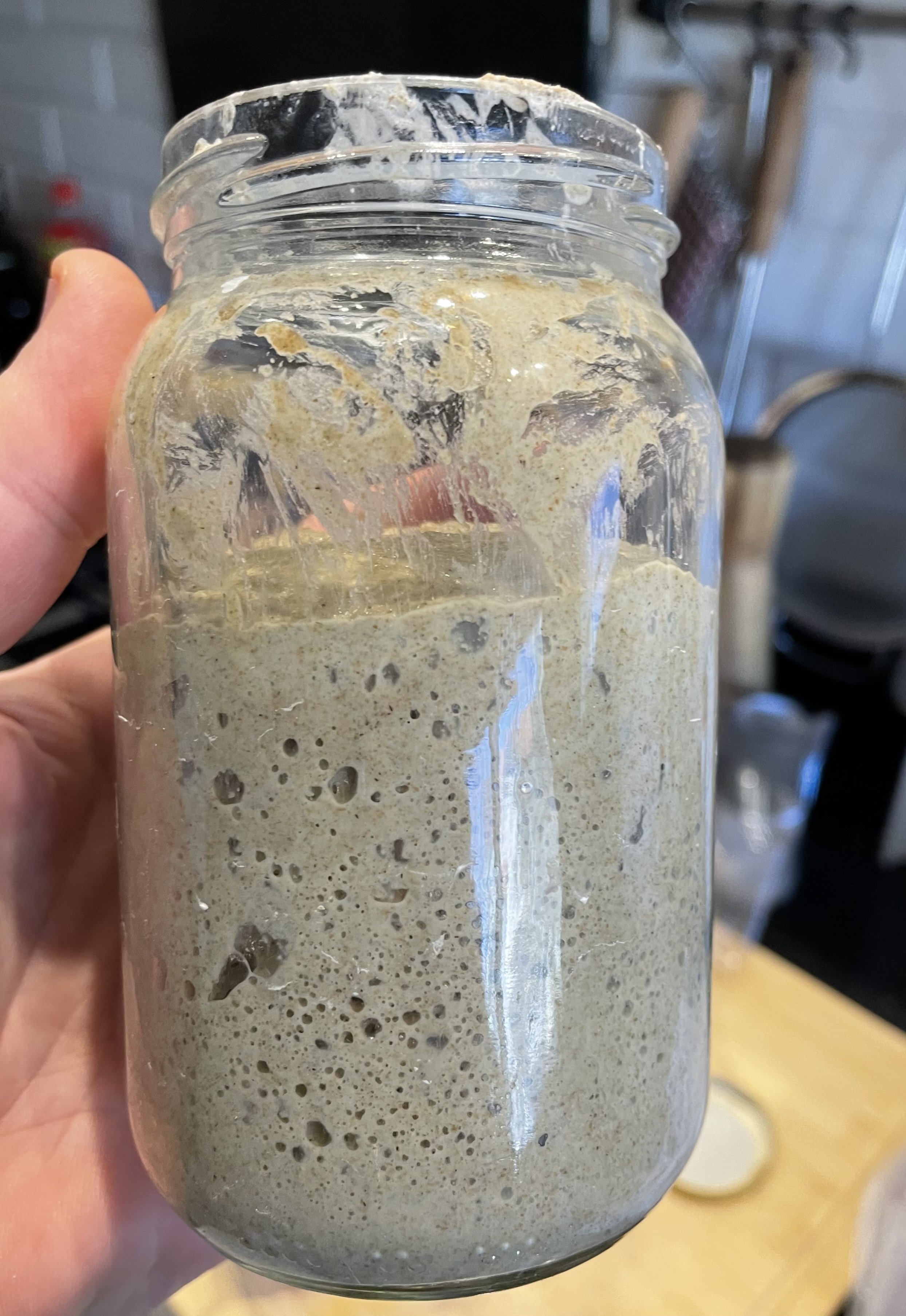 new rye starter looking really good, somehow it grew way too fast, growing in volume at least x5 times after two feedings, I’ll need to double/triple feed it daily for at least a week to make it go sour a bit for some flavor.