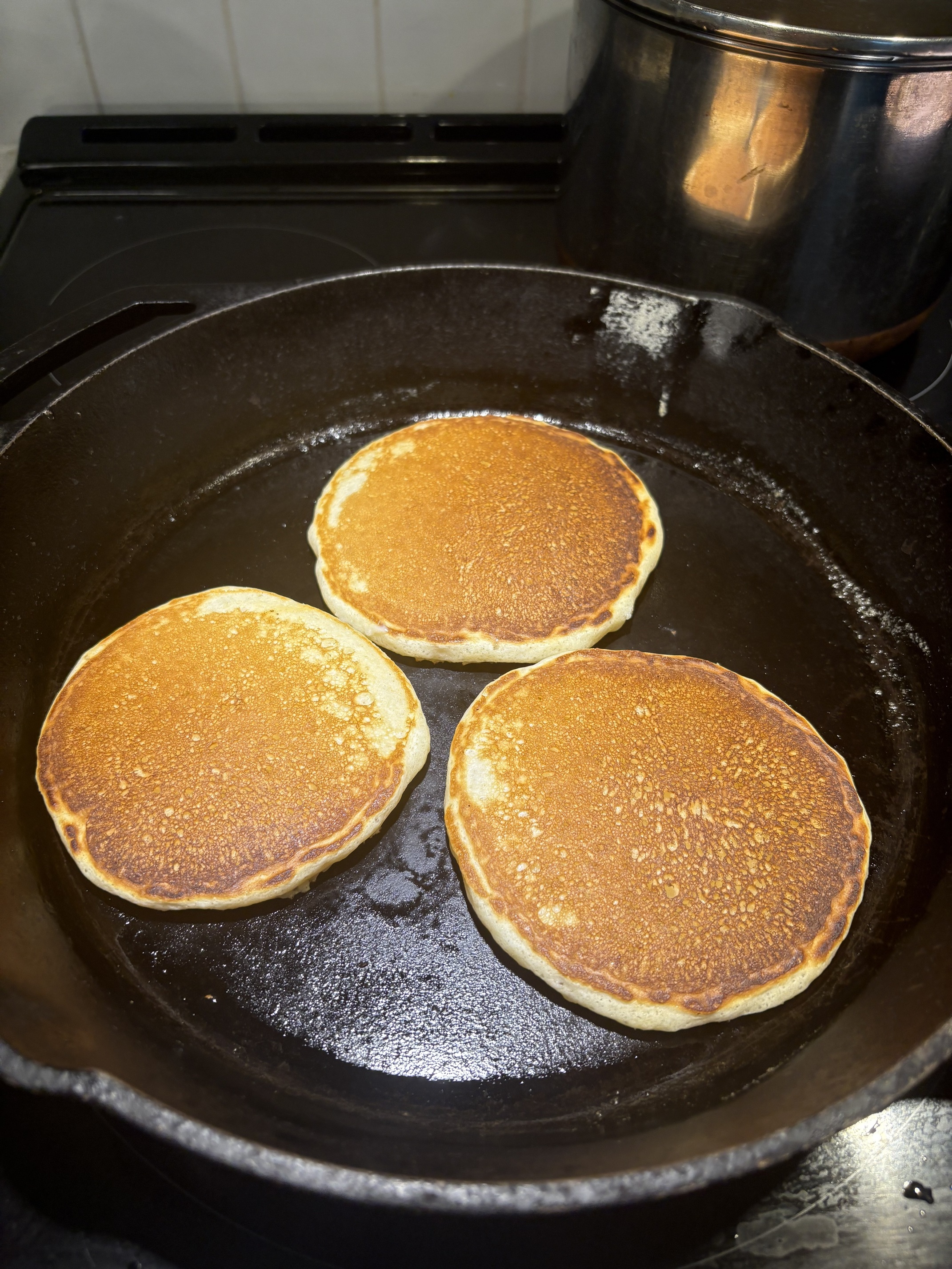 I make ours with false buttermilk…basically 1 tbsp of lemon for each cup of milk.