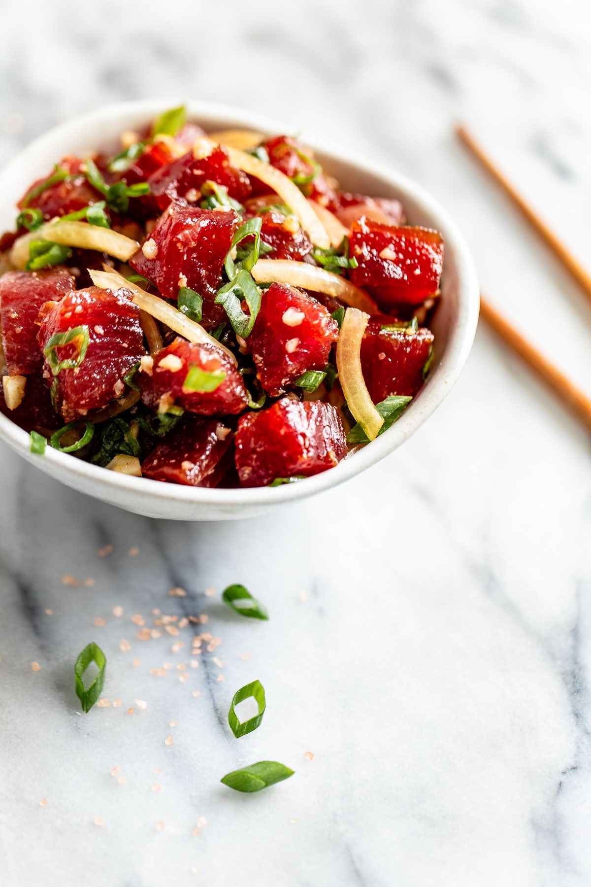 It’s raw tuna, onions (Maui/white and green), salt, sesame oil, and if you’re lucky inamona.