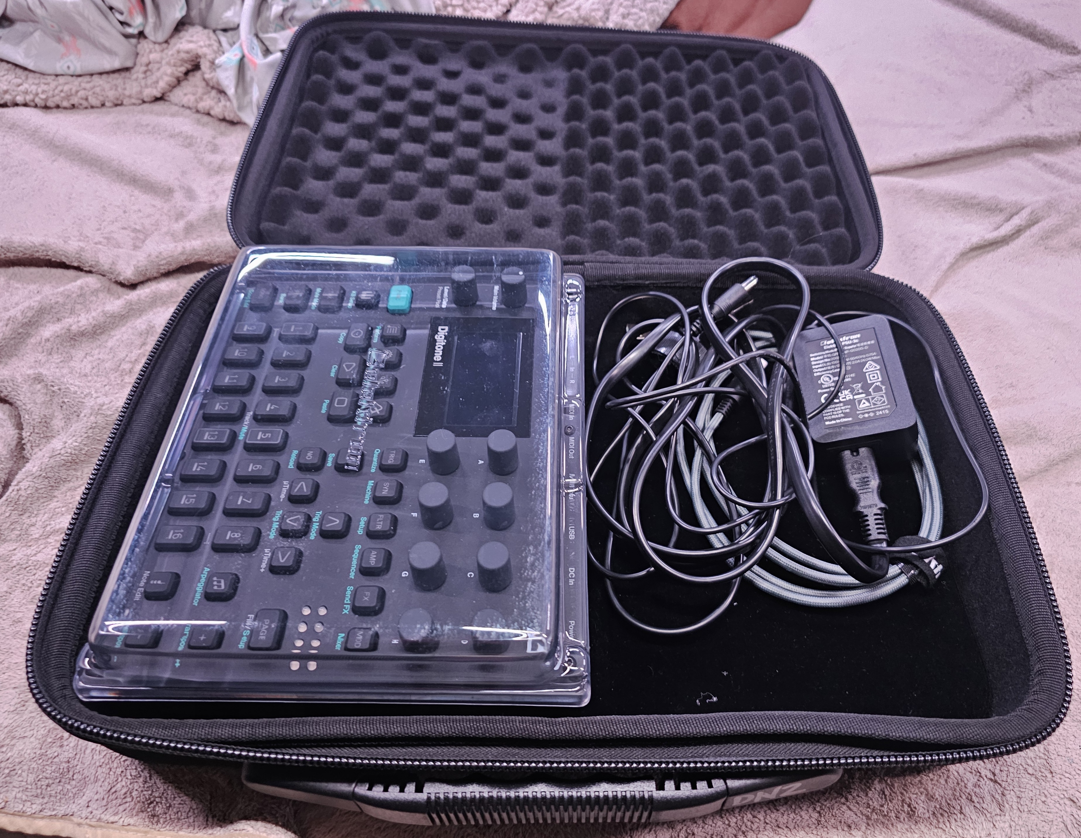 I use the analog cases octatrack pulse case for everything. the OT version has foam in the top, with a decksaver it’s a compression fit, nothing can move around, lots of space for power and cables and stuff. OT version has he/him zipper/handle too
