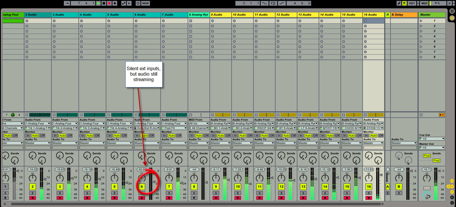 I bought this hub late last year after seeing some recommendations, including yours, and I have it working fine on Live 9.5 with 8 A4 and 8 AR tracks. For A4, I recorded the 4 tracks, 1 FX, 1 Ext L/R, and 1 Master L/R, and made it the soundcard output for that last pair, making it 8.