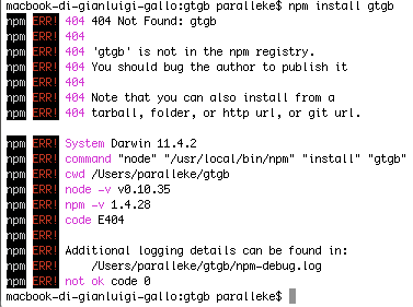 It looks like you’ve downloaded gtbg from Github rather than installing it using “npm install gtbg”. Delete the copy you’ve downloaded, and follow the install instructions.