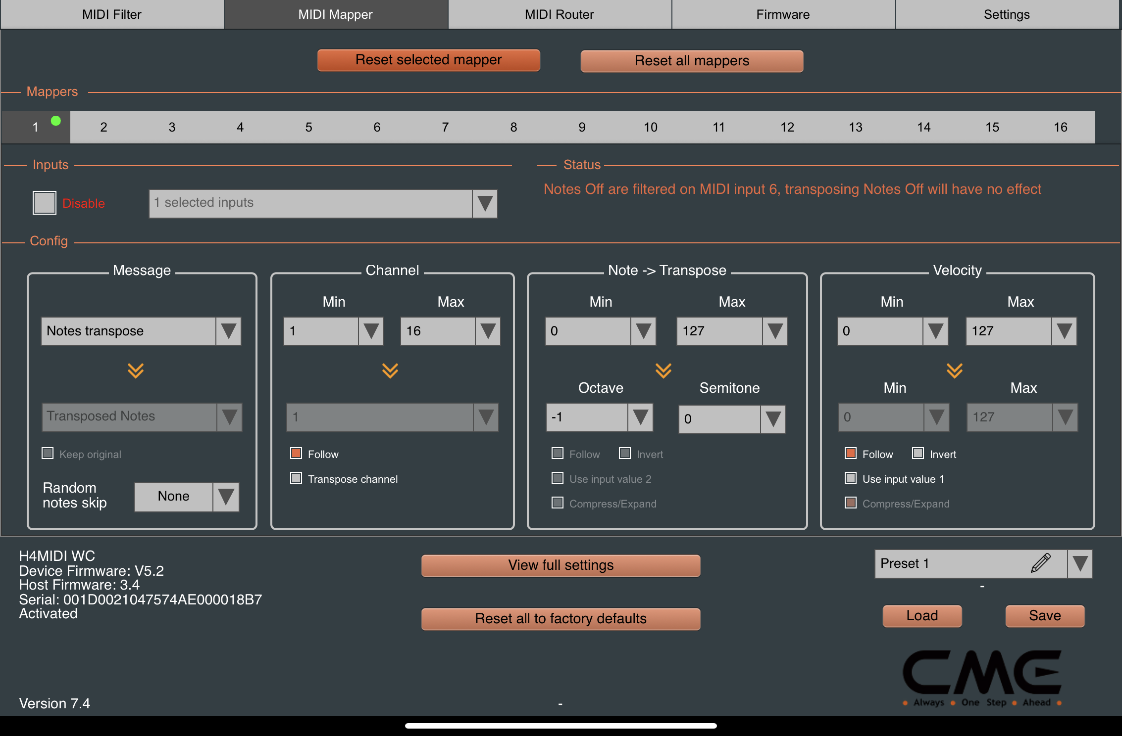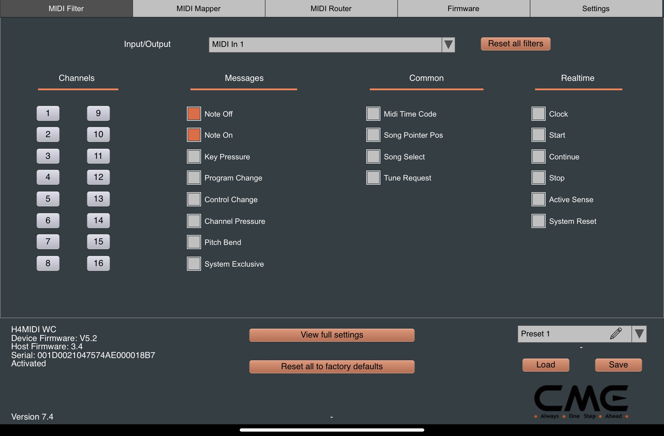 Here’s a snap of everything the CME H4MIDI WC is controlling…