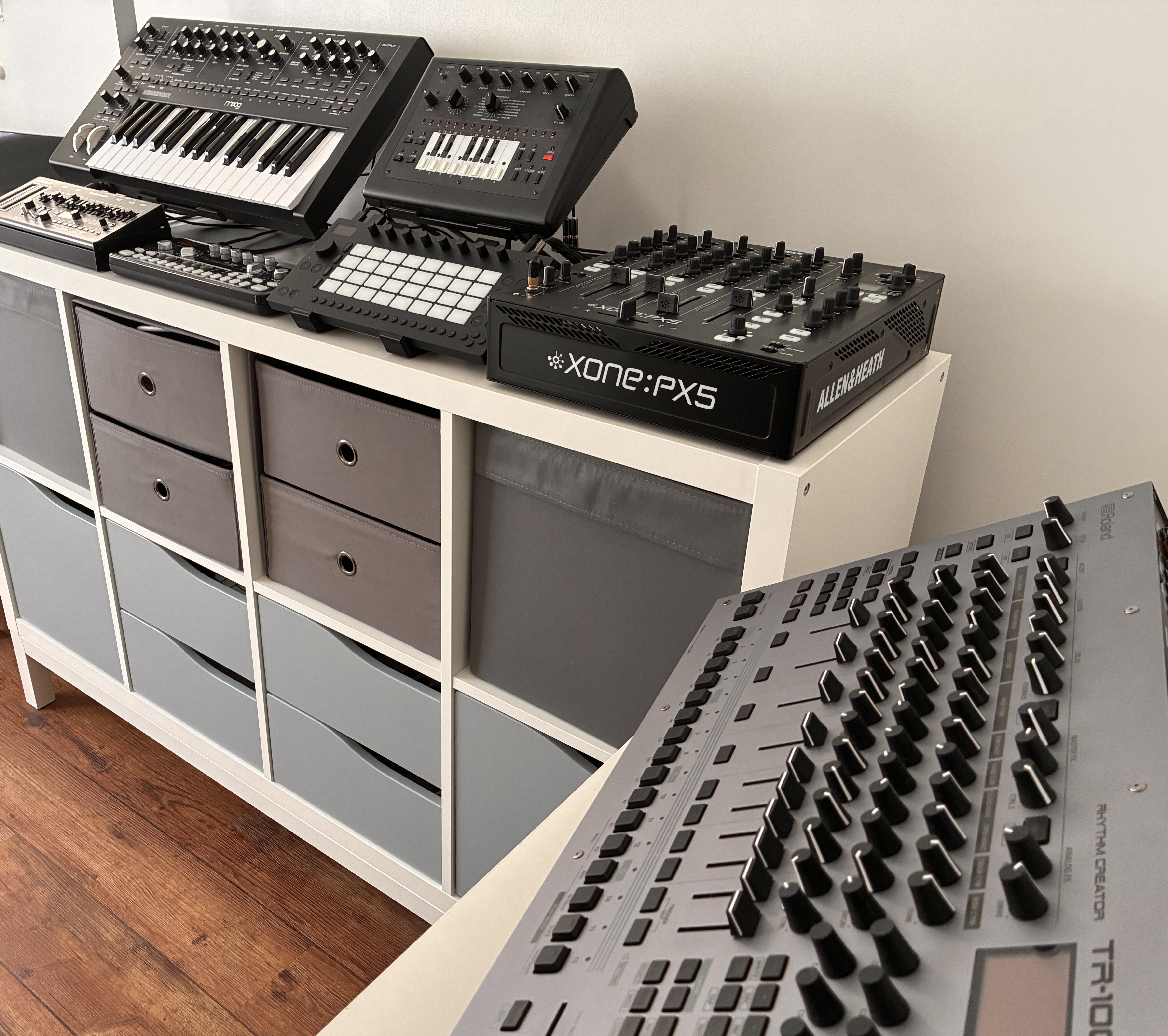 I’m also really pleased with the Move (which was the whole reason I got the CME as it only has USB MIDI so I needed a bridge). As well as using it for its internal sounds (mainly when I want polyphony) and to play/sequence other gear, they also just added Audio Tracks so I’m using it alongside the Xone mixer for send FX and live looping. Works great for DJ style transitions!