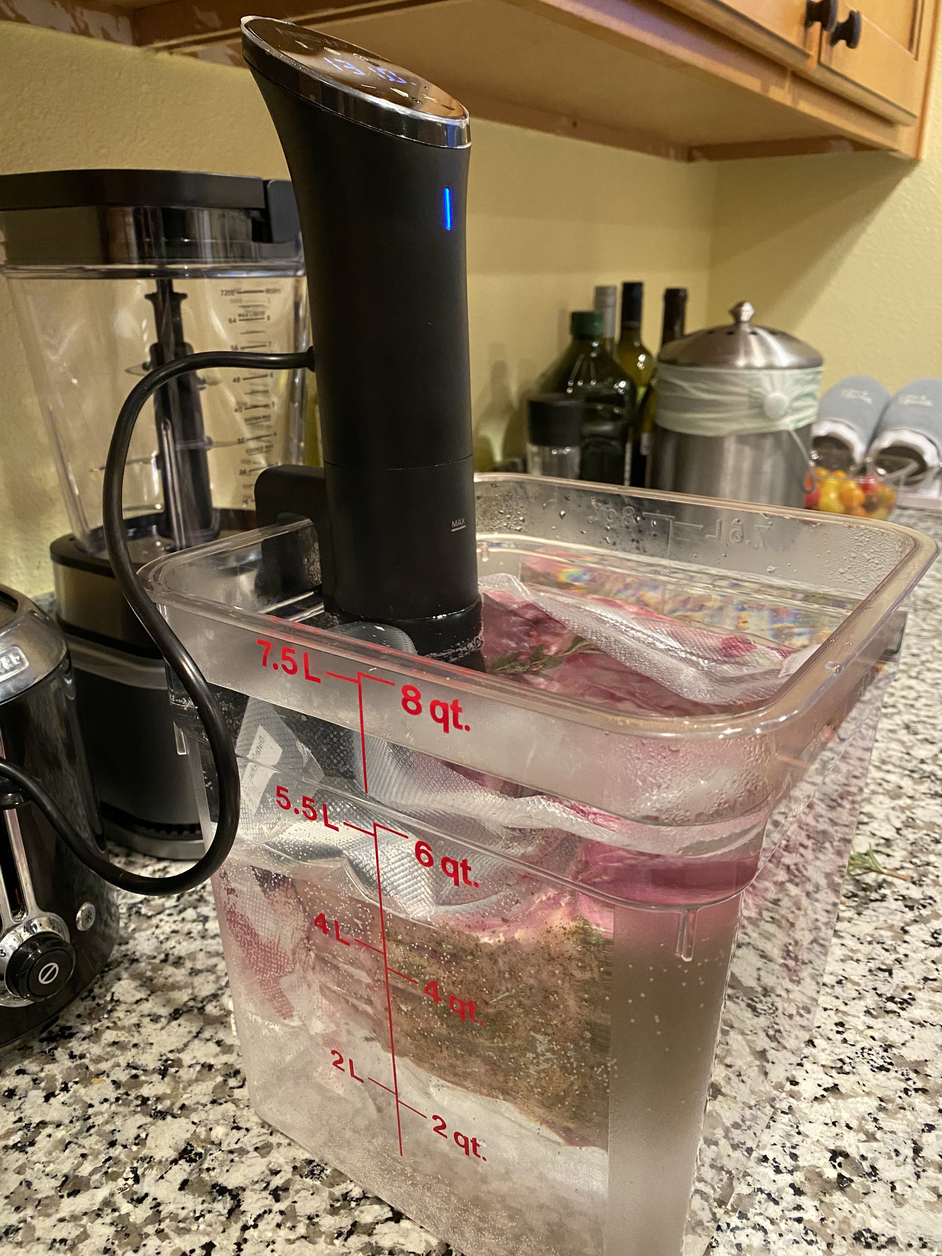 Nice work! I just put a rack of lamb in the sous vide. Gonna coat that bastard in Dijon and herbed panko and then broil it here in a couple hours.