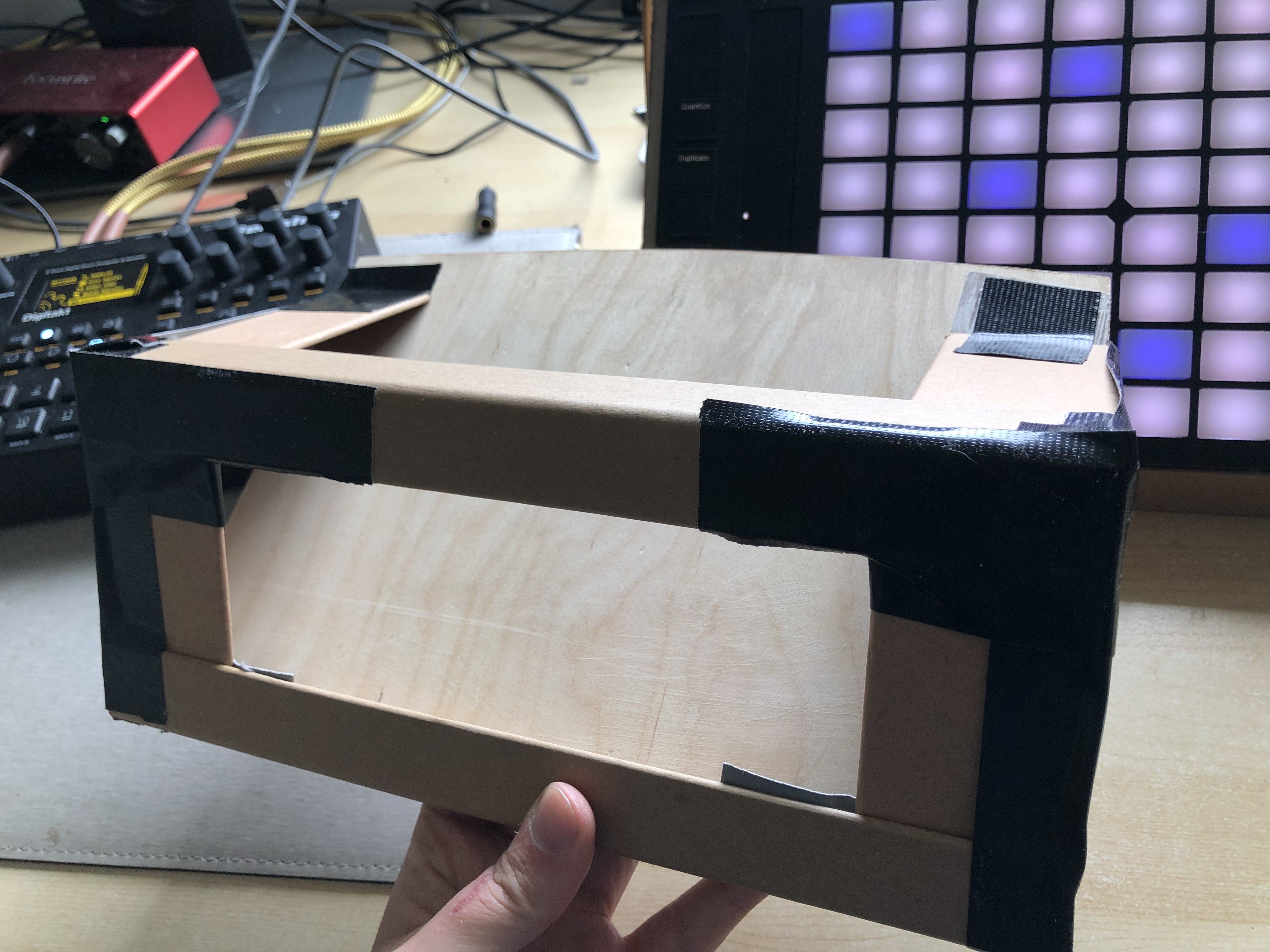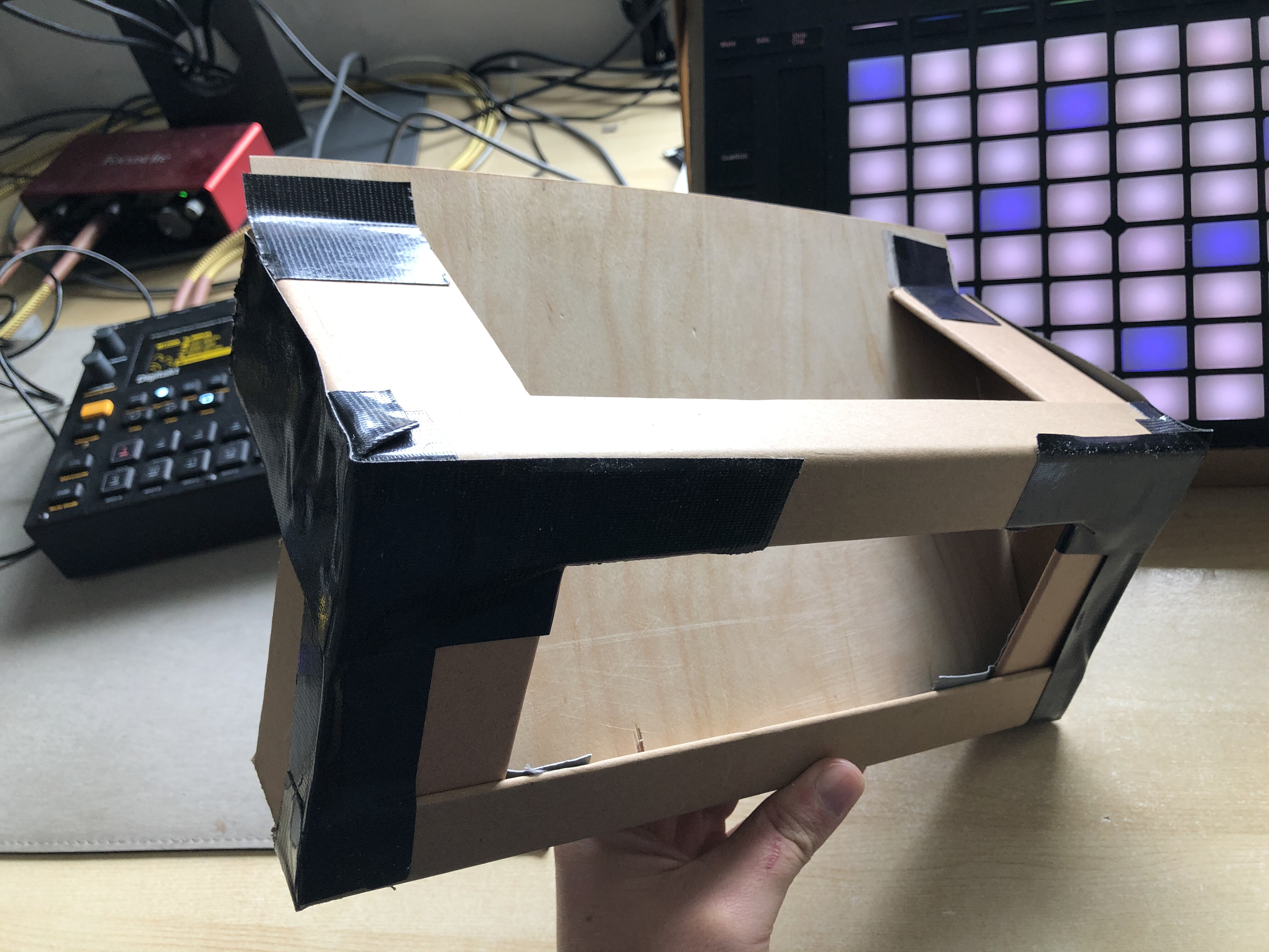 I thought you lot might be interested in these synth stands I bashed together. I have a day off work and - as always - procrastinated away from music and made these. They took about half an hour, and cost exactly nothing - apart from a bit of gaffa tape.
