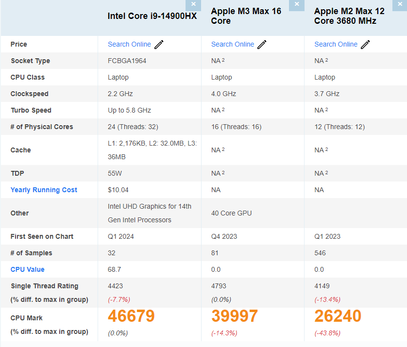 Those new Intel chips often look faster but the TDP is at least double the top end M3. It’s a common thing now to measure against Apple Silicon but not say that the power comes with increase TDP.