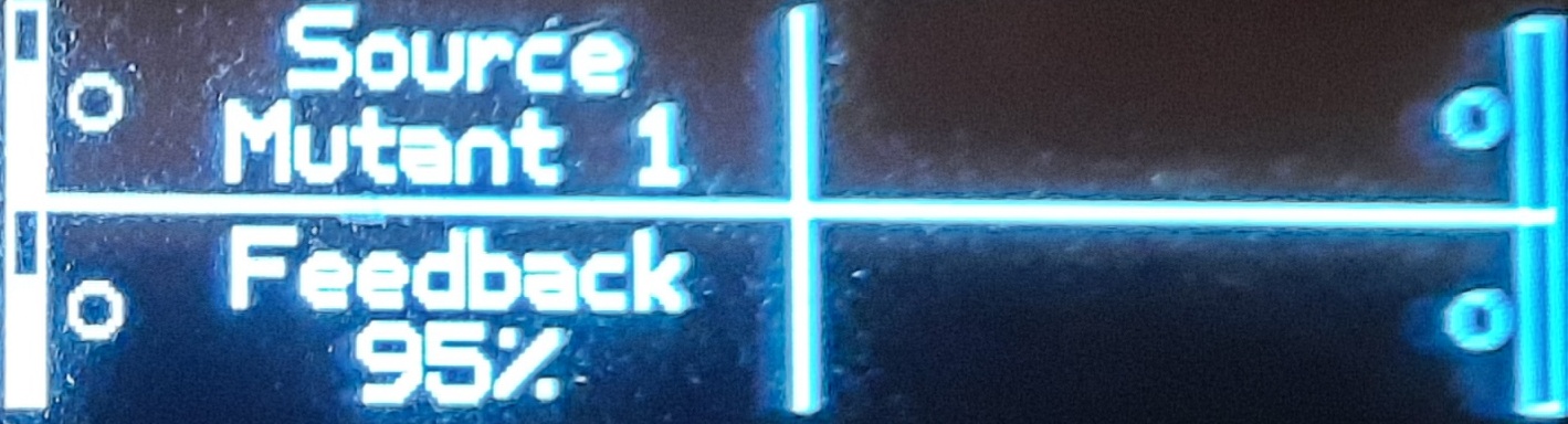 On other FM synths, I usually just use one sine wave and turn up the feedback until it sharpens up. So here, I’d use the same osc as the modulator for the mutator (i.e., making the ratio irrelevant).