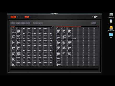 The P.M. shows two banks on screen. Load the patches you intend to load from onto one side of the screen and the destination bank on the HS on the other side of the screen. Then select the patches you want to move — they will appear selected on the computer screen, and drag them to the start position you want on the HS bank.
